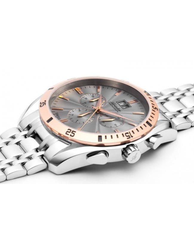 Мужские швейцарские часы-хронографХронографФункция позволяет измерять отрезки времени с особой точностью: часы, минуты, секунды. Верным признаком хронографа является наличие на циферблате 3 дополнительных окошек-счётчиков. с секундомеромСекундомерСекундоме́р — прибор, способный измерять интервалы времени с точностью до долей секунды. Adriatica Chronograph A8202.R117CH имеют кварцевый механизм с высокой точностью. Сапфировое стеклоСапфировое стеклоПрочный и надёжный материал из кристалла сапфира синтетического происхождения, характеризующийся особой твёрдостью и устойчивостью к царапинам и повреждениям. устойчивое к появлению царапин, обладающее высокой прозрачностью защищает гильошированный серый циферблат с метками в виде штрихов. Корпус часов изготовлен из нержавеющей стали, а на безельБезельВнешний ободок, закрепляющий стекло. В спортивных часах так называется поворотное кольцо с делениями на циферблате, выполняет роль таймера – замеряет отрезки времени на шкале. Неподвижный безель – элемент декора. Однонаправленно вращающийся безель на дайверских часах позволяет фиксировать моменты погружения и выныривания на поверхность. нанесено PVDPVDУльтратонкое покрытие наносится в технике вакуумного напыления, сочетает в себе нитрид титана особой прочности со слоем золота или оксида хрома. Несёт в себе декоративную или защитную функцию. покрытие. Часы имеют окошко даты находится в положении 12 часов, а также 3 дополнительных циферблата. Стальной браслет с раскладной застёжкойРаскладная застёжкаТакой тип застёжки используется только на браслетах из металла. Она никогда не раскрывается полностью, происходит разделение на 2 и более частей. Раскладывающая застёжка снизит вероятность потери часов к минимуму. обеспечивает комфортное ношение и надежную фиксацию на запястье. Надежный кварцевый механизм с калибром RONDA 5040 гарантирует точность времени, а водозащита 50 метров, что позволит защитить корпус от случайных брызг или капель дождя.