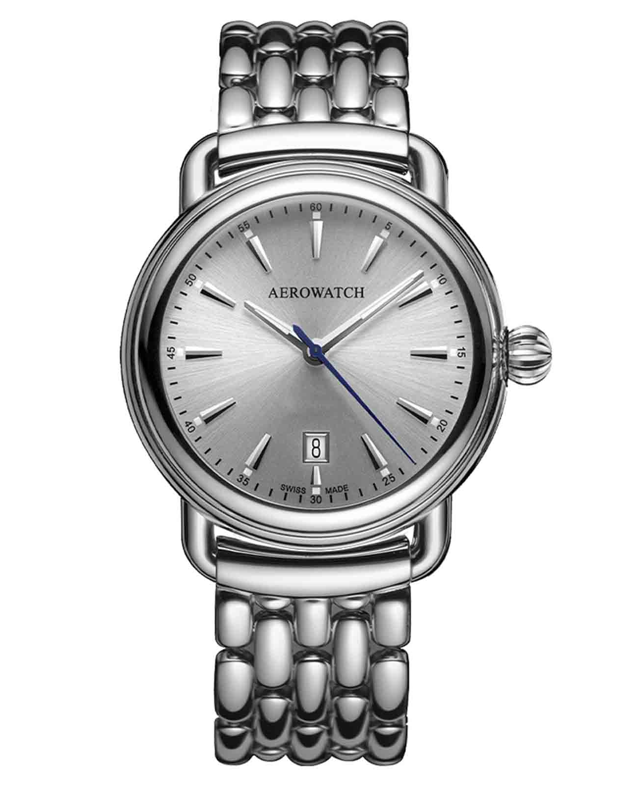 Мужские швейцарские часы с Aerowatch Renaissance 1942 42900 AA19 M, кварцевый механизм с высокой точностью. Сапфировое стеклоСапфировое стеклоПрочный и надёжный материал из кристалла сапфира синтетического происхождения, характеризующийся особой твёрдостью и устойчивостью к царапинам и повреждениям. устойчивое к появлению царапин, обладающее высокой прозрачностью. Корпус изготовлен из нержавеющей стали. Серебристый sunray циферблат украшен родированными индексами и метками с люминесцентным покрытиемЛюминесцентное покрытиеПозволяет считывать показания времени в темноте. Производители наносят на стрелки, часовые индексы, безель или поверхность циферблата светонакопительный состав, дающий холодное свечение., окошко даты в положении 6 часов. Класс водозащиты: 50 метров, позволит защитить корпус от случайных брызг или капель дождя. Кожаный ремешок на стандартной застёжке.
