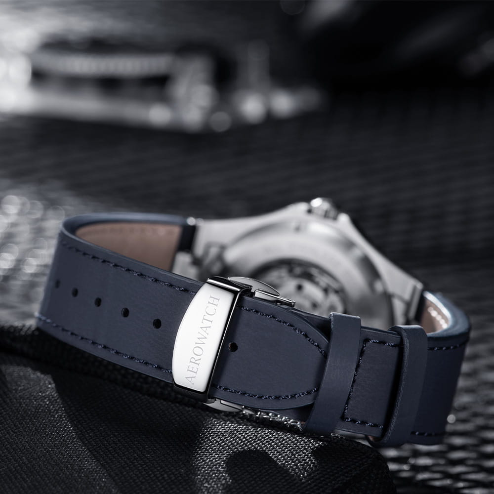 Мужские механические швейцарские часы с автоподзаводом Aerowatch Les Grandes Classiques 60998 AA01. Сапфировое стеклоСапфировое стеклоПрочный и надёжный материал из кристалла сапфира синтетического происхождения, характеризующийся особой твёрдостью и устойчивостью к царапинам и повреждениям. устойчивое к появлению царапин, обладающее высокой прозрачностью. Корпус изготовлен из нержавеющей стали. На циферблате расположены стрелки и метки с люминесцентным покрытиемЛюминесцентное покрытиеПозволяет считывать показания времени в темноте. Производители наносят на стрелки, часовые индексы, безель или поверхность циферблата светонакопительный состав, дающий холодное свечение., окошко даты в положении 6 часов. В модели есть усложение - GMT функция.Класс водозащиты: 120 метров, позволит плавать, нырять и заниматься другими водными видами спорта. Кожаный ремешок на застёжке «бабочка» с кнопкамиЗастёжка "бабочка"Такой вид застёжки дополняется предохранителями, помогающими избежать случайного раскрытия браслета. Обладают изящным исполнением. .