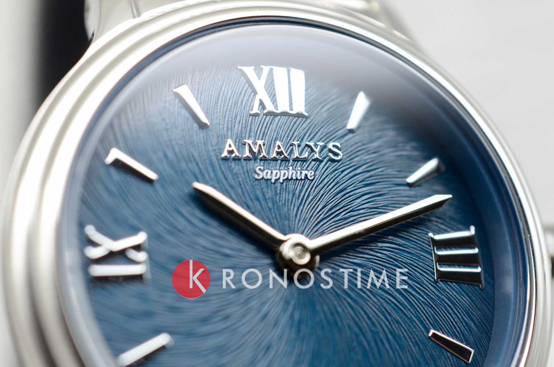 Amalys AMW-166 — женская модель с утончённым классическим дизайном, в которой сочетаются элегантность и практичность. Круглый корпус диаметром 28 мм выполнен из нержавеющей стали, гармонирующим с браслетом шириной 14 мм в том же исполнении. Защитную функцию выполняет сапфировое стеклоСапфировое стеклоПрочный и надёжный материал из кристалла сапфира синтетического происхождения, характеризующийся особой твёрдостью и устойчивостью к царапинам и повреждениям., стойкое к царапинам и сохраняющее прозрачность. Механизм — кварцевый, обеспечивающий точность и стабильность хода. Браслет миланского плетения снабжён раскладным замкомРаскладной замокДанный вариант застежки используется только на часах с металлическим браслетом. Отличительная особенность такого крепления в том, что длина браслета становится универсальной и вы можете самостоятельно отрегулировать нужный вам размер – застежка просто двигается по браслету часов., который сочетает надёжность фиксации и удобство повседневного использования. Водозащита 5 ATM защищает часы от случайных брызг и дождя. Циферблат с римскими индексами и изящными стрелками подчёркивает классическую эстетику модели, делая её уместной как в повседневных образах, так и в торжественной обстановке.