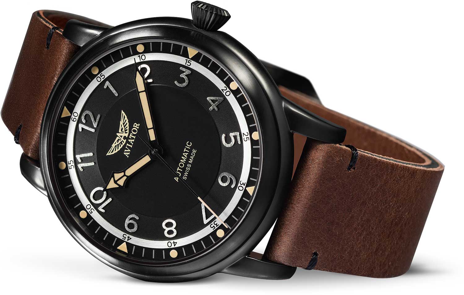 Aviator Douglas V.3.31.5.228.4 — швейцарские часы в классике авиадизайна, сочетающие безупречную читаемость и высокую надёжность. Лимитированная серия. Корпус диаметром 45 мм выполнен из нержавеющей стали с PVD-покрытиемPVDУльтратонкое покрытие наносится в технике вакуумного напыления, сочетает в себе нитрид титана особой прочности со слоем золота или оксида хрома. Несёт в себе декоративную или защитную функцию. черного цвета. Накладные метки выполнены в виде арабских цифр. Часовые метки и стрелки покрыты люминесцентным покрытиемЛюминесцентное покрытиеПозволяет считывать показания времени в темноте. Производители наносят на стрелки, часовые индексы, безель или поверхность циферблата светонакопительный состав, дающий холодное свечение. Superluminova, позволяющим легко определять время даже в тёмное время суток. Поверхность защищена прочным сапфировым стекломСапфировое стеклоПрочный и надёжный материал из кристалла сапфира синтетического происхождения, характеризующийся особой твёрдостью и устойчивостью к царапинам и повреждениям. с антибликовым покрытием, устойчивым к царапинам. Сердце модели — швейцарский механизм Sellita SW 200, известный своей точностью и долговечностью. Калибр управляется регулятором Etachron, который обеспечивает высокую точность хода как на земле, так и над землей. Водозащита 100 метров, позволит плавать, нырять и заниматься другими водными видами спорта. Завинчивающаяся головка и задняя крышка обеспечивают уверенную ударопрочностьУдаропрочный корпусМеханизм заключён в корпус, выполненный из современных материалов, устойчивых к ударам, механическим повреждениям и падению с высоты: инновационный пластик, карбон, нержавеющая сталь, титан. и надёжную защиту от влаги и пыли. В механизме 26 камней, запас хода 38 часов. Модель дополнена кожаным ремешком с выразительной текстурой и классическим стилем, закреплённым с помощью классической застежки — для максимального комфорта и лёгкости в повседневном использовании. Прозрачная задняя крышка украшена имитацией функции контроля управления хвоста самолета. Ротор механизма указывает на градусы, как в авиационном приборе триммер. Aviator — это образец лётной точности, инженерной чёткости и сдержанной роскоши, идеально подходящий для тех, кто ценит функциональность и уверенность в каждом элементе.