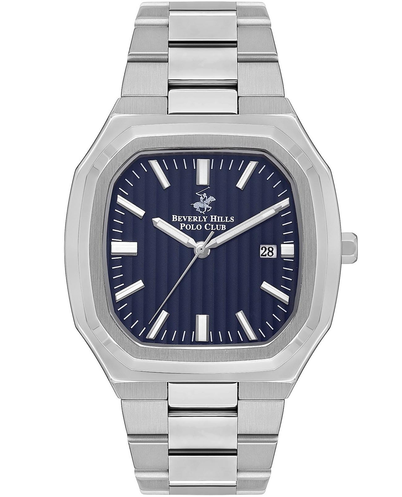 Американские мужские часы Beverly Hills Polo Club BP3547X.390 с надёжным кварцевым механизмом. Минеральное стеклоМинеральное стеклоМинеральное стекло представляет собой искусственно выращенный минерал кварца. Такое стекло отличается особой устойчивостью к повреждениям и царапинам. Уступает по некоторым качествам сапфировому стеклу. устойчивое к появлению царапин, обладающее высокой прозрачностью. Класс водозащиты: 100 метров, позволит плавать, нырять и заниматься другими водными видами спорта. Корпус часов изготовлен из нержавеющей стали. Стальной браслет на раскладной застёжкеРаскладная застёжкаТакой тип застёжки используется только на браслетах из металла. Она никогда не раскрывается полностью, происходит разделение на 2 и более частей. Раскладывающая застёжка снизит вероятность потери часов к минимуму.. Окошко даты находится в положении 3 часа. Стрелки и метки с люминесцентным покрытиемЛюминесцентное покрытиеПозволяет считывать показания времени в темноте. Производители наносят на стрелки, часовые индексы, безель или поверхность циферблата светонакопительный состав, дающий холодное свечение..