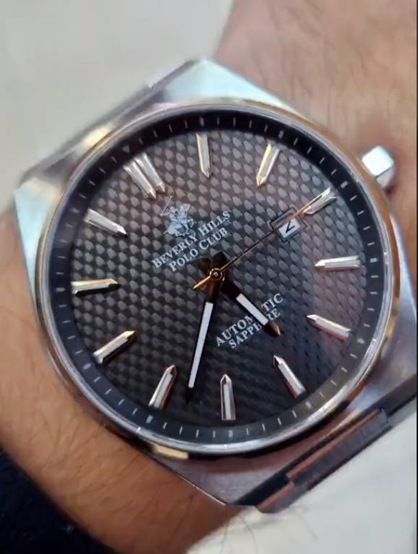 Американские мужские часы с сапфировым стекломСапфировое стеклоПрочный и надёжный материал из кристалла сапфира синтетического происхождения, характеризующийся особой твёрдостью и устойчивостью к царапинам и повреждениям. Beverly Hills Polo Club BP3574X.560, механический механизм (автоматический калибр) с высокой точностью. Сапфировое стеклоСапфировое стеклоПрочный и надёжный материал из кристалла сапфира синтетического происхождения, характеризующийся особой твёрдостью и устойчивостью к царапинам и повреждениям. устойчивое к появлению царапин, обладающее высокой прозрачностью. Класс водозащиты: 100 метров, позволит плавать, нырять и заниматься другими водными видами спорта. Корпус часов изготовлен из стали. Стальной браслет на раскладной застёжкеРаскладная застёжкаТакой тип застёжки используется только на браслетах из металла. Она никогда не раскрывается полностью, происходит разделение на 2 и более частей. Раскладывающая застёжка снизит вероятность потери часов к минимуму.. БезельБезельВнешний ободок, закрепляющий стекло. В спортивных часах так называется поворотное кольцо с делениями на циферблате, выполняет роль таймера – замеряет отрезки времени на шкале. Неподвижный безель – элемент декора. Однонаправленно вращающийся безель на дайверских часах позволяет фиксировать моменты погружения и выныривания на поверхность. с IP-покрытиемIP-покрытиеМетод ионного напыления. Демонстрирует повышенную устойчивость к истиранию, окислению и химическим веществам. Под воздействием высокого давления и температуры около 1500°C молекулы металла надёжно соединяются с частицами корпуса часов..Стрелки и метки с люминесцентным покрытиемЛюминесцентное покрытиеПозволяет считывать показания времени в темноте. Производители наносят на стрелки, часовые индексы, безель или поверхность циферблата светонакопительный состав, дающий холодное свечение..