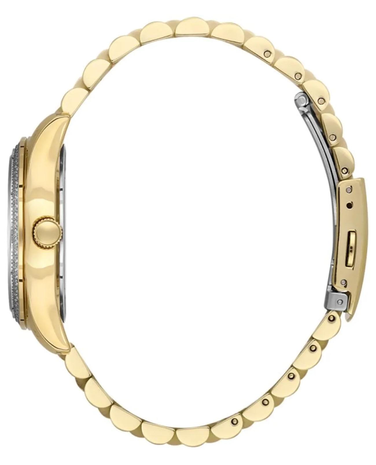 Женские часы Beverly Hills Polo BP3592C.120 с надёжным кварцевым механизмом. Минеральное стеклоМинеральное стеклоМинеральное стекло представляет собой искусственно выращенный минерал кварца. Такое стекло отличается особой устойчивостью к повреждениям и царапинам. Уступает по некоторым качествам сапфировому стеклу. устойчивое к появлению царапин, обладающее высокой прозрачностью. Класс водозащиты: 30 метров, позволит защитить корпус от случайных брызг или капель дождя. Корпус и браслет часов изготовлены из стали с IP-покрытиемIP-покрытиеМетод ионного напыления. Демонстрирует повышенную устойчивость к истиранию, окислению и химическим веществам. Под воздействием высокого давления и температуры около 1500°C молекулы металла надёжно соединяются с частицами корпуса часов.. Стальной браслет на раскладной застёжкеРаскладная застёжкаТакой тип застёжки используется только на браслетах из металла. Она никогда не раскрывается полностью, происходит разделение на 2 и более частей. Раскладывающая застёжка снизит вероятность потери часов к минимуму.. БезельБезельВнешний ободок, закрепляющий стекло. В спортивных часах так называется поворотное кольцо с делениями на циферблате, выполняет роль таймера – замеряет отрезки времени на шкале. Неподвижный безель – элемент декора. Однонаправленно вращающийся безель на дайверских часах позволяет фиксировать моменты погружения и выныривания на поверхность. инкрустирован кристаллами. Стрелки и метки с люминесцентным покрытиемЛюминесцентное покрытиеПозволяет считывать показания времени в темноте. Производители наносят на стрелки, часовые индексы, безель или поверхность циферблата светонакопительный состав, дающий холодное свечение..