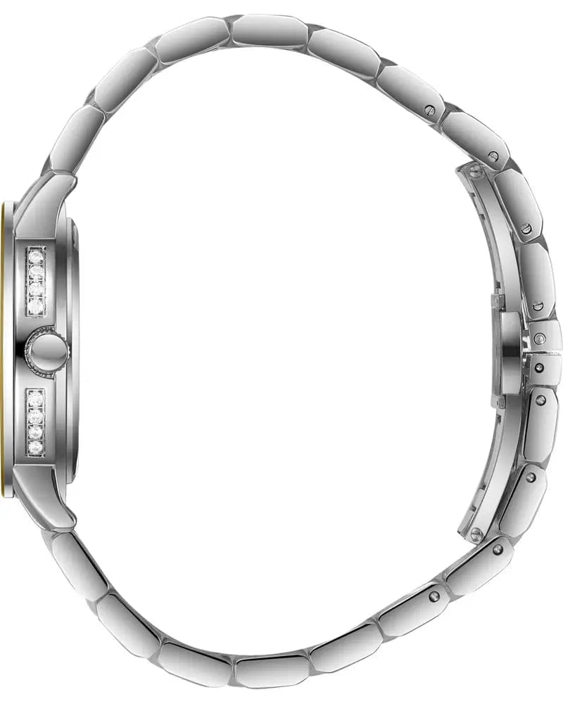 Модель оснащена кварцевым механизмом, обеспечивающим точное измерение времени. Металлический браслет с PVD-покрытиемPVDУльтратонкое покрытие наносится в технике вакуумного напыления, сочетает в себе нитрид титана особой прочности со слоем золота или оксида хрома. Несёт в себе декоративную или защитную функцию. дополнен застёжкой-бабочкойЗастёжка "бабочка"Такой вид застёжки дополняется предохранителями, помогающими избежать случайного раскрытия браслета. Обладают изящным исполнением. , обеспечивающей комфортное ношение и надёжную фиксацию.