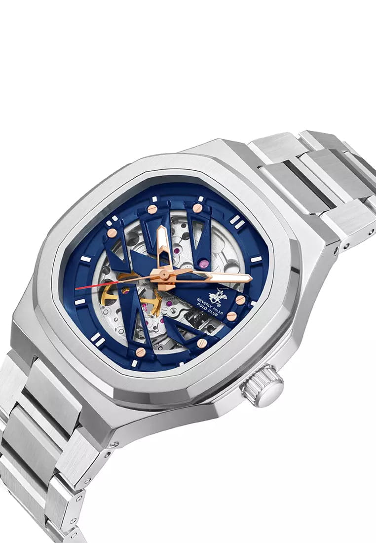 Часы Beverly Hills Polo Club BP3686X.390 — это мужская модель, сочетающая элегантность и функциональность. Корпус диаметром 43 мм выполнен из нержавеющей стали придающим часам современный и стильный вид. Скелетонизированный синий циферблат защищён минеральным стекломМинеральное стеклоМинеральное стекло представляет собой искусственно выращенный минерал кварца. Такое стекло отличается особой устойчивостью к повреждениям и царапинам. Уступает по некоторым качествам сапфировому стеклу. с сапфировым покрытием, устойчивым к царапинам.