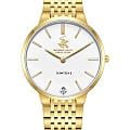 Американские мужские часы Beverly Hills Polo Club BP3776X.130 - это стильный мужской аксессуар, который сочетает элегантный дизайн и практичность. Корпус выполнен из нержавеющей стали с IP-покрытиемIP-покрытиеМетод ионного напыления. Демонстрирует повышенную устойчивость к истиранию, окислению и химическим веществам. Под воздействием высокого давления и температуры около 1500°C молекулы металла надёжно соединяются с частицами корпуса часов. золотого цвета, диаметром 39 мм, что обеспечивает долговечность и утончённый внешний вид. Надежное минеральное стеклоМинеральное стеклоМинеральное стекло представляет собой искусственно выращенный минерал кварца. Такое стекло отличается особой устойчивостью к повреждениям и царапинам. Уступает по некоторым качествам сапфировому стеклу. с сапфировым покрытием защищает циферблат от царапин и обеспечивает долговечность. Модель оснащена кварцевым механизмом, обеспечивающим высокую точность хода. Стальной браслет на застёжке-бабочке с кнопкамиЗастёжка "бабочка"Такой вид застёжки дополняется предохранителями, помогающими избежать случайного раскрытия браслета. Обладают изящным исполнением. обеспечивает комфортное ношение. Метки в виде штрихов, в позиции "6 часов" инкрустирован синтетический бриллиант. Водозащита 50 метров позволит защитить корпус от случайных брызг или капель дождя. Метки оснащены люминесцентным покрытиемЛюминесцентное покрытиеПозволяет считывать показания времени в темноте. Производители наносят на стрелки, часовые индексы, безель или поверхность циферблата светонакопительный состав, дающий холодное свечение., обеспечивающим отличную видимость даже при слабом освещении. Эта модель – отличный выбор для тех, кто ищет сочетание стиля, качества и функциональности. Часы станут не только полезным аксессуаром, но и выразительным элементом вашего имиджа.