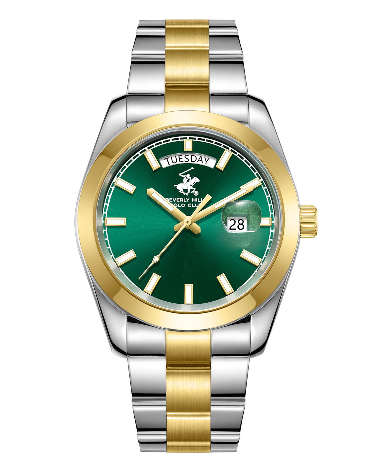 Мужские кварцевые часы Beverly Hills Polo Club — это стильный аксессуар, сочетающий современный дизайн и надёжность. Корпус диаметром 41 мм выполнен из стали с частичным IP-покрытиемIP-покрытиеМетод ионного напыления. Демонстрирует повышенную устойчивость к истиранию, окислению и химическим веществам. Под воздействием высокого давления и температуры около 1500°C молекулы металла надёжно соединяются с частицами корпуса часов. цвета жёлтого золота, придающим модели благородный внешний вид. Циферблат глубокого зелёного оттенка гармонично контрастирует с металлическими элементами, создавая выразительный образ. Защиту циферблата обеспечивает минеральное стеклоМинеральное стеклоМинеральное стекло представляет собой искусственно выращенный минерал кварца. Такое стекло отличается особой устойчивостью к повреждениям и царапинам. Уступает по некоторым качествам сапфировому стеклу. с сапфировым покрытием — прочное и устойчивое к царапинам. Функция индикации даты добавляет практичности повседневному использованию. Браслет изготовлен из стали с частичным IP-покрытиемIP-покрытиеМетод ионного напыления. Демонстрирует повышенную устойчивость к истиранию, окислению и химическим веществам. Под воздействием высокого давления и температуры около 1500°C молекулы металла надёжно соединяются с частицами корпуса часов., что обеспечивает комфорт при ношении и визуальную целостность дизайна. Часы обладают водонепроницаемостью , что позволяет использовать их в повседневных условиях — при мытье рук или под лёгким дождём. Эти часы станут универсальным аксессуаром для тех, кто ценит сочетание стиля, качества и яркого характера — идеальный выбор для уверенных в себе мужчин. Кожаный картхолдер в комплекте выполнен из высококачественной кожи и дополнен фирменным дизайном. Универсальный аксессуар вместительный, компактный и удобный в повседневной носке — идеально подходит для хранения карт, или документов.
