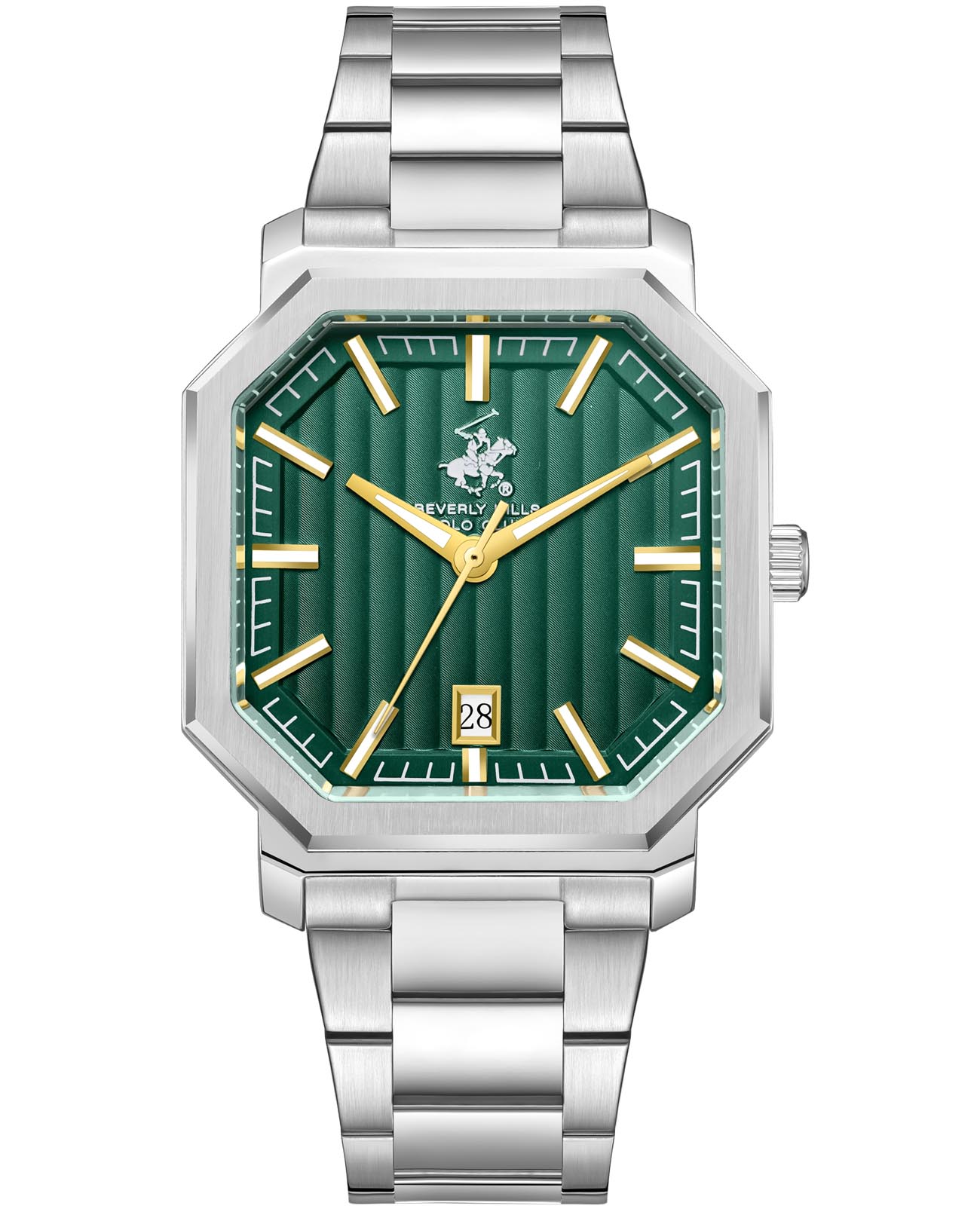 Американские мужские часы Beverly Hills Polo Club BP3793X.370 - это стильный мужской аксессуар, который сочетает элегантный дизайн и практичность. Корпус выполнен из нержавеющей стали серебристого цвета, диаметром 38 мм, что обеспечивает долговечность и утончённый внешний вид. Надежное минеральное стеклоМинеральное стеклоМинеральное стекло представляет собой искусственно выращенный минерал кварца. Такое стекло отличается особой устойчивостью к повреждениям и царапинам. Уступает по некоторым качествам сапфировому стеклу. с сапфировым покрытием защищает циферблат от царапин и обеспечивает долговечность. Модель оснащена кварцевым механизмом, обеспечивающим высокую точность хода. Стальной браслет на застёжке-бабочке с кнопкамиЗастёжка "бабочка"Такой вид застёжки дополняется предохранителями, помогающими избежать случайного раскрытия браслета. Обладают изящным исполнением. обеспечивает комфортное ношение. Окошко даты находится в положении 6 часов. Стрелки и метки с люминесцентным покрытиемЛюминесцентное покрытиеПозволяет считывать показания времени в темноте. Производители наносят на стрелки, часовые индексы, безель или поверхность циферблата светонакопительный состав, дающий холодное свечение. позволяют легко считывать время даже в условиях недостаточного освещения. Водозащита 50 метров позволит защитить корпус от случайных брызг или капель дождя. Эта модель – отличный выбор для тех, кто ищет сочетание стиля, качества и функциональности. Часы станут не только полезным аксессуаром, но и выразительным элементом вашего имиджа.