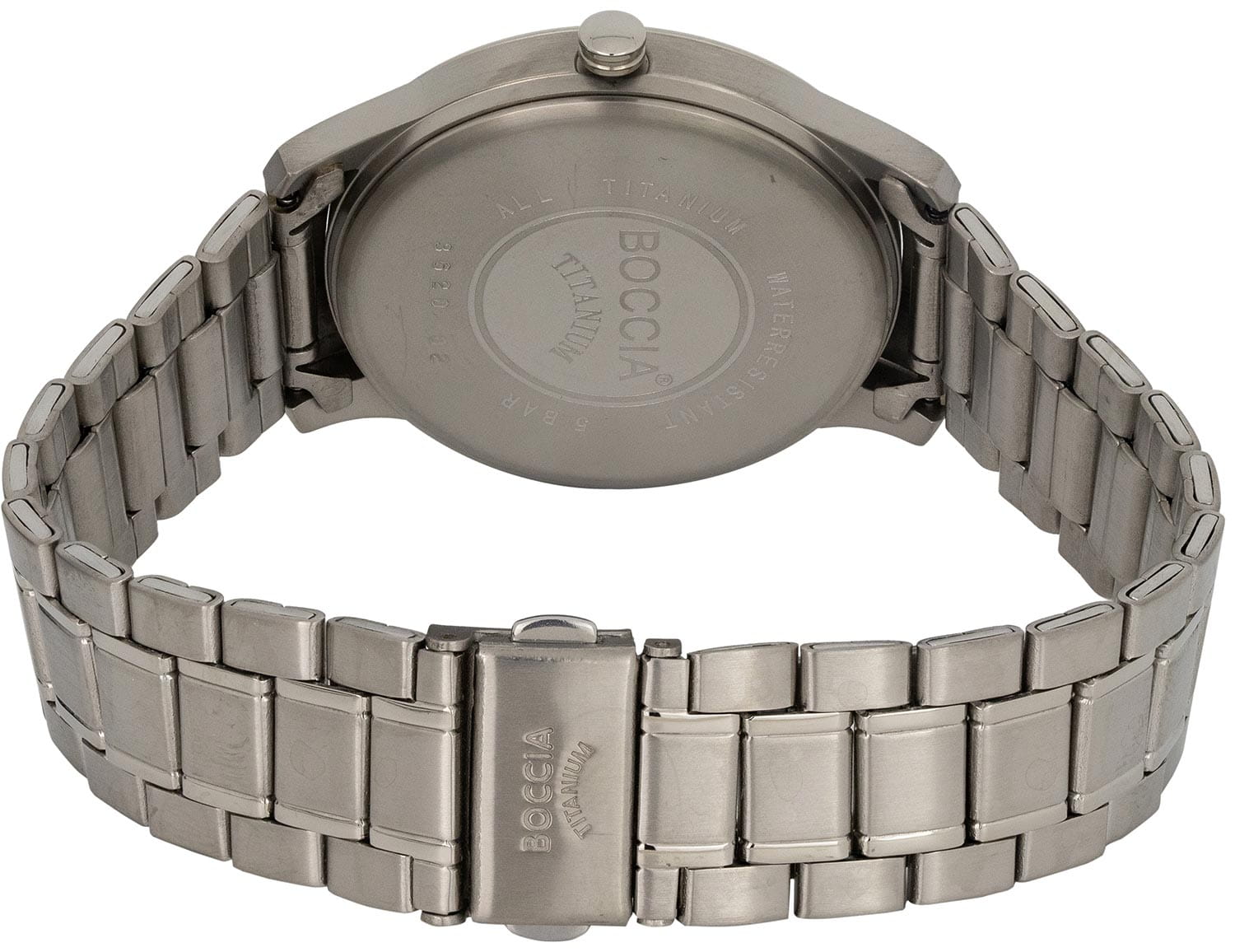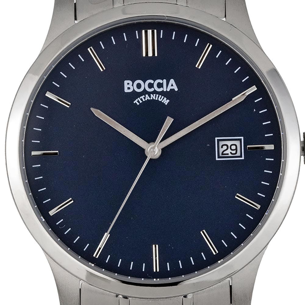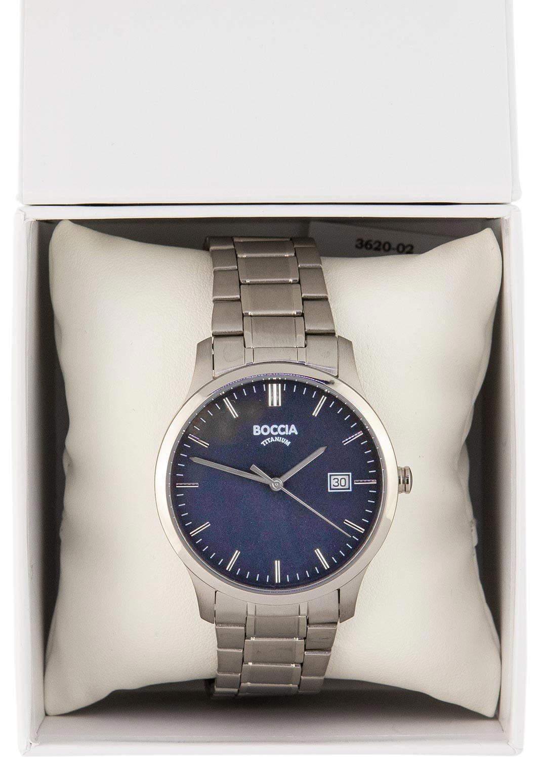 Мужские наручные часы Boccia Titanium 3620-02 с надёжным кварцевым механизмом. Корпус и браслет часов изготовлены из титана. Минеральное стеклоМинеральное стеклоМинеральное стекло представляет собой искусственно выращенный минерал кварца. Такое стекло отличается особой устойчивостью к повреждениям и царапинам. Уступает по некоторым качествам сапфировому стеклу. устойчивое к мелким механическим повреждениям. Класс водозащиты: 50 метров, позволит защитить корпус от случайных брызг или капель дождя. Титановый браслет на раскладной застёжкеРаскладная застёжкаТакой тип застёжки используется только на браслетах из металла. Она никогда не раскрывается полностью, происходит разделение на 2 и более частей. Раскладывающая застёжка снизит вероятность потери часов к минимуму.. Окошко даты находится в положении 3 часа.