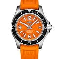 Класс водозащиты: 200 метров, позволит плавать, нырять и заниматься другими водными видами спорта. Корпус часов изготовлен из нержавеющей стали, серебристого цвета. Оранжевый каучуковый ремешок с классической застежкой из нержавеющей стали.