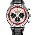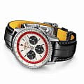 Мужские швейцарские часы-хронографХронографФункция позволяет измерять отрезки времени с особой точностью: часы, минуты, секунды. Верным признаком хронографа является наличие на циферблате 3 дополнительных окошек-счётчиков. с секундомеромСекундомерСекундоме́р — прибор, способный измерять интервалы времени с точностью до долей секунды. Breitling Navitimer B01 Chronograph 43 Boeing 747 AB01383B1G1P1, механический механизм (автоматический калибр) с высокой точностью. Сапфировое стеклоСапфировое стеклоПрочный и надёжный материал из кристалла сапфира синтетического происхождения, характеризующийся особой твёрдостью и устойчивостью к царапинам и повреждениям. устойчивое к появлению царапин, обладающее высокой прозрачностью. Класс водозащиты: 30 метров, позволит защитить корпус от случайных брызг или капель дождя. Корпус часов изготовлен из стали. Кожаный ремешок с раскладной застёжкойРаскладная застёжкаТакой тип застёжки используется только на браслетах из металла. Она никогда не раскрывается полностью, происходит разделение на 2 и более частей. Раскладывающая застёжка снизит вероятность потери часов к минимуму.. Шкала тахиметраТахиметрРазмеченная шкала, располагается на ободке или безеле часов. Тахиметр позволяет рассчитать скорость на определённом участке пути, расстояние измеряется в километрах или милях. на циферблате. Часы имеют сертификат COSCСертификат COSCОфициальный сертификат, подтверждающий то, что часы ходят с особо высокой точностью. Для получения документа часы подвергаются тестовым испытаниям, разработанным швейцарским институтом тестирования хронометров COSC. Допустимая норма для механических часов -4/+6 секунд в день, для кварцевых моделей +/- 0,07 секунд в день.. Окошко даты находится в положении 6 часов. Стрелки и метки с люминесцентным покрытиемЛюминесцентное покрытиеПозволяет считывать показания времени в темноте. Производители наносят на стрелки, часовые индексы, безель или поверхность циферблата светонакопительный состав, дающий холодное свечение..