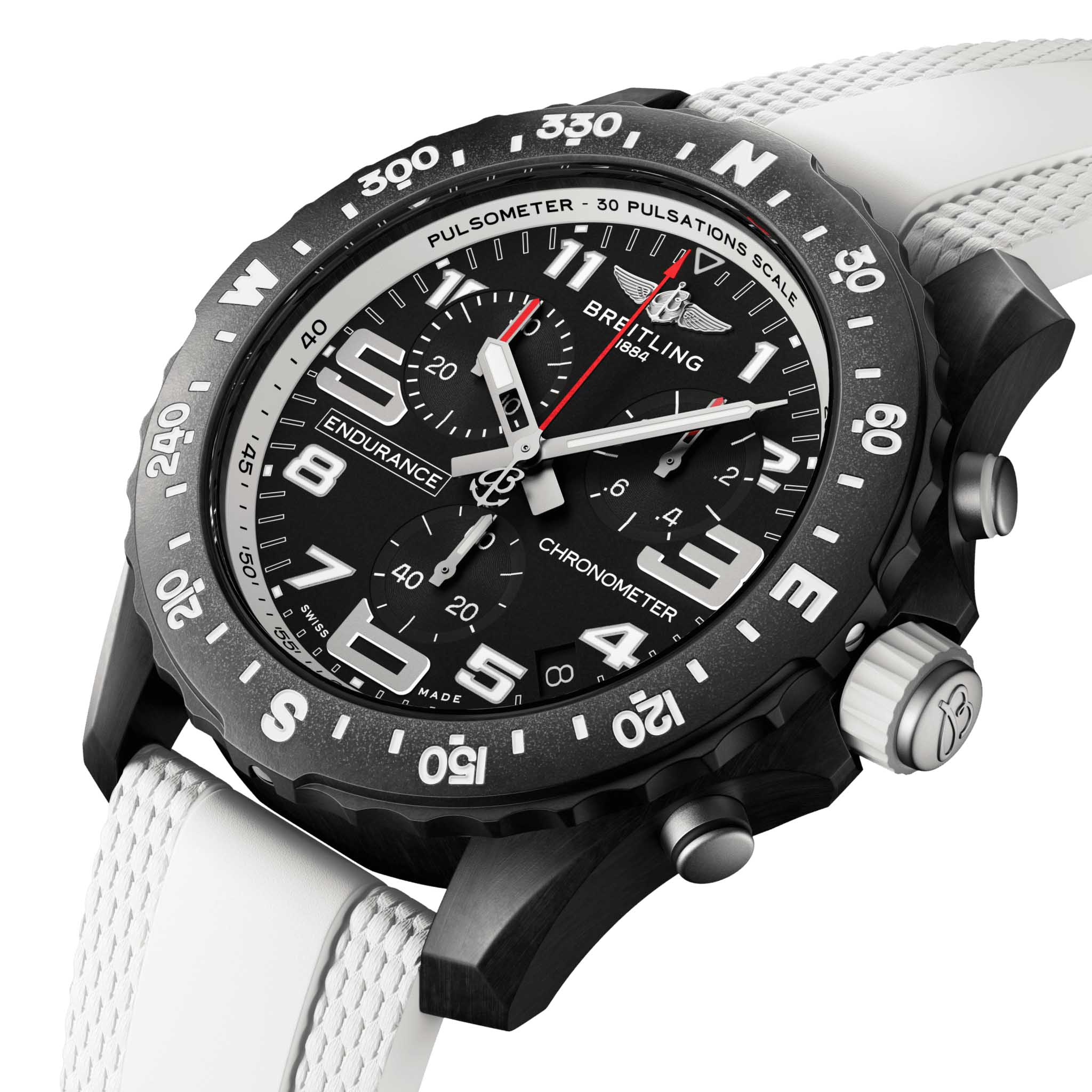 Швейцарские часы Breitling Endurance Pro 44 X82310A71B1S2. Корпус часов изготовлен из прочного сверхлегкого материала Breitlight. Класс водозащиты: 100 метров, позволит плавать, нырять и заниматься другими водными видами спорта. Стрелки с люминесцентным покрытиемЛюминесцентное покрытиеПозволяет считывать показания времени в темноте. Производители наносят на стрелки, часовые индексы, безель или поверхность циферблата светонакопительный состав, дающий холодное свечение.. Сапфировое стеклоСапфировое стеклоПрочный и надёжный материал из кристалла сапфира синтетического происхождения, характеризующийся особой твёрдостью и устойчивостью к царапинам и повреждениям. устойчивое к появлению царапин, обладающее высокой прозрачностью. Каучуковый ремешок.
