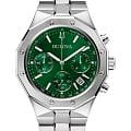 Мужские кварцевые часы-хронографХронографФункция позволяет измерять отрезки времени с особой точностью: часы, минуты, секунды. Верным признаком хронографа является наличие на циферблате 3 дополнительных окошек-счётчиков. Bulova Classic 96B409 – отражающий идеальное сочетание современного дизайна, надёжности и функциональности. Элегантный облик станет превосходным завершением образа, наделив его индивидуальным характером. Корпус из нержавеющей стали, диаметром 44 мм идеально сбалансирован и элегантен. Минеральное стеклоМинеральное стеклоМинеральное стекло представляет собой искусственно выращенный минерал кварца. Такое стекло отличается особой устойчивостью к повреждениям и царапинам. Уступает по некоторым качествам сапфировому стеклу. защищает циферблат от царапин и устойчивое к мелким механическим повреждениям. Шкала тахиметраТахиметрРазмеченная шкала, располагается на ободке или безеле часов. Тахиметр позволяет рассчитать скорость на определённом участке пути, расстояние измеряется в километрах или милях. на циферблате. Стальной браслет на раскладной застёжкеРаскладная застёжкаТакой тип застёжки используется только на браслетах из металла. Она никогда не раскрывается полностью, происходит разделение на 2 и более частей. Раскладывающая застёжка снизит вероятность потери часов к минимуму. обеспечивает комфортное ношение. Стрелки и метки с люминесцентным покрытиемЛюминесцентное покрытиеПозволяет считывать показания времени в темноте. Производители наносят на стрелки, часовые индексы, безель или поверхность циферблата светонакопительный состав, дающий холодное свечение. позволяющие легко определять время даже в темноте. Водозащита 100 метров, позволит плавать, нырять и заниматься другими водными видами спорта. Окошко даты находится в положении между 4 и 5 часов. Эта модель – отличный выбор для тех, кто ищет сочетание стиля, качества и функциональности. Часы станут не только полезным аксессуаром, но и выразительным элементом вашего имиджа.