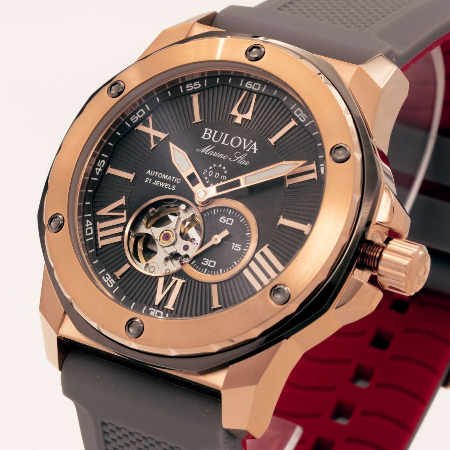 Мужские механические часы с автоподзаводом Bulova Marine Star 98A228 – отражающий идеальное сочетание современного дизайна, надёжности и функциональности. Элегантный облик станет превосходным завершением образа, наделив его индивидуальным характером. Корпус из нержавеющей стали с IP-покрытиемIP-покрытиеМетод ионного напыления. Демонстрирует повышенную устойчивость к истиранию, окислению и химическим веществам. Под воздействием высокого давления и температуры около 1500°C молекулы металла надёжно соединяются с частицами корпуса часов., диаметром 45 мм идеально сбалансирован и элегантен. Защиту циферблата обеспечивает прочное минеральное стеклоМинеральное стеклоМинеральное стекло представляет собой искусственно выращенный минерал кварца. Такое стекло отличается особой устойчивостью к повреждениям и царапинам. Уступает по некоторым качествам сапфировому стеклу. гарантирующее четкость показаний. Центральные часовая и минутная стрелки, секундная стрелка вынесена на малый циферблат. Силиконовый ремешок со стандартной застежкой обеспечивает комфортное ношение. Водозащита 200 метров позволит плавать, нырять и заниматься другими водными видами спорта. Стрелки с люминесцентным покрытиемЛюминесцентное покрытиеПозволяет считывать показания времени в темноте. Производители наносят на стрелки, часовые индексы, безель или поверхность циферблата светонакопительный состав, дающий холодное свечение. позволяющие легко определять время даже в темноте. Эта модель – отличный выбор для тех, кто ищет сочетание стиля, качества и функциональности. Часы станут не только полезным аксессуаром, но и выразительным элементом вашего имиджа.