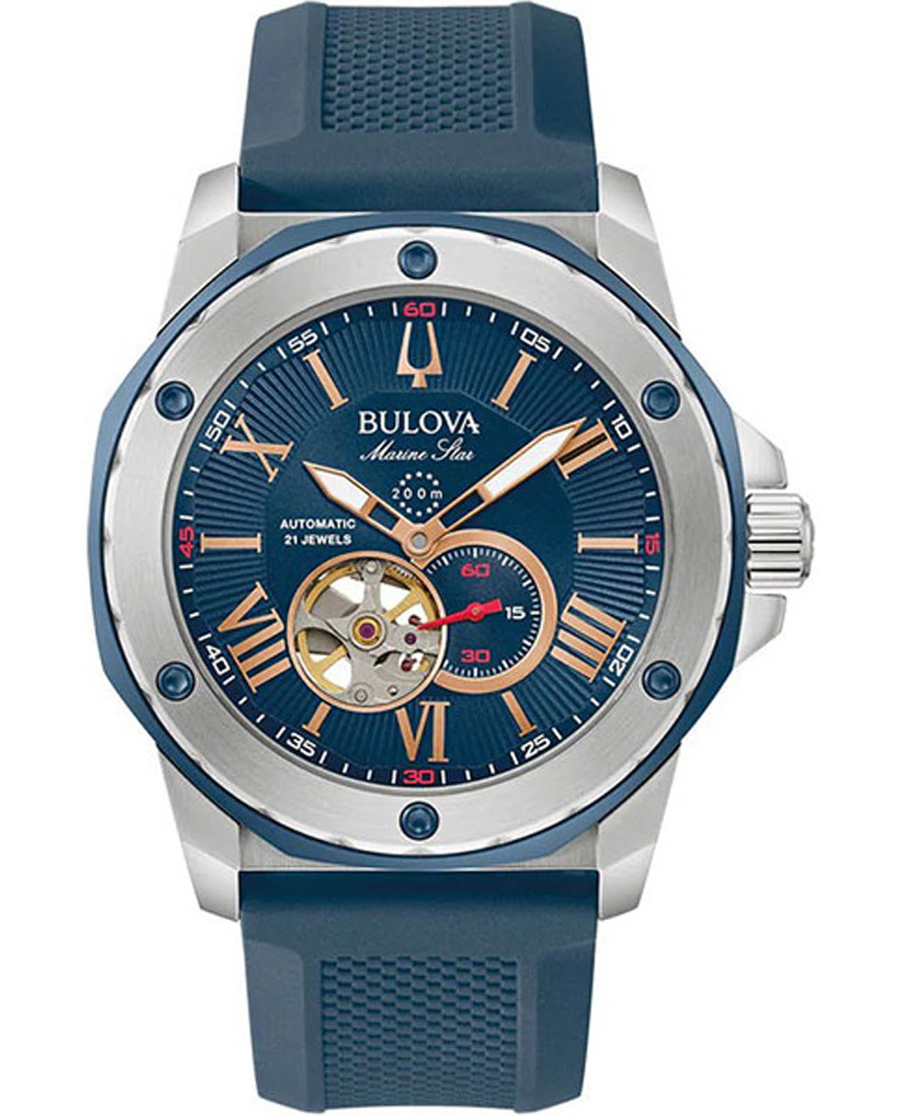 Мужские механические часы с автоподзаводом Bulova Marine Star 98A282 – отражающий идеальное сочетание современного дизайна, надёжности и функциональности. Элегантный облик станет превосходным завершением образа, наделив его индивидуальным характером. Корпус из нержавеющей стали с частичным IP-покрытиемIP-покрытиеМетод ионного напыления. Демонстрирует повышенную устойчивость к истиранию, окислению и химическим веществам. Под воздействием высокого давления и температуры около 1500°C молекулы металла надёжно соединяются с частицами корпуса часов., диаметром 45 мм идеально сбалансирован и элегантен. Защиту циферблата обеспечивает прочное минеральное стеклоМинеральное стеклоМинеральное стекло представляет собой искусственно выращенный минерал кварца. Такое стекло отличается особой устойчивостью к повреждениям и царапинам. Уступает по некоторым качествам сапфировому стеклу. гарантирующее четкость показаний. Центральные часовая и минутная стрелки, секундная стрелка вынесена на малый циферблат. Силиконовый ремешок со стандартной застежкой обеспечивает комфортное ношение.  Водозащита 200 метров позволит плавать, нырять и заниматься другими водными видами спорта. Стрелки с люминесцентным покрытиемЛюминесцентное покрытиеПозволяет считывать показания времени в темноте. Производители наносят на стрелки, часовые индексы, безель или поверхность циферблата светонакопительный состав, дающий холодное свечение. позволяющие легко определять время даже в темноте. Эта модель – отличный выбор для тех, кто ищет сочетание стиля, качества и функциональности. Часы станут не только полезным аксессуаром, но и выразительным элементом вашего имиджа.