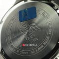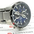 Ярко-синий циферблат стильно смотрится в сочетании с контрастными элементами оформления. Кварцевый хронографХронографФункция позволяет измерять отрезки времени с особой точностью: часы, минуты, секунды. Верным признаком хронографа является наличие на циферблате 3 дополнительных окошек-счётчиков. имеет крупную индикацию времени, что позволяет без проблем считывать информацию даже при беглом взгляде на запястье. Ударопрочный корпусУдаропрочный корпусМеханизм заключён в корпус, выполненный из современных материалов, устойчивых к ударам, механическим повреждениям и падению с высоты: инновационный пластик, карбон, нержавеющая сталь, титан. и браслет выполнены из нержавеющей стали 316L, отличающейся долговечностью. Кварцевый механизм с точностью хода +/- 30 секунд в месяц. Срок службы батарейки - 2 года. Закручивающаяся задняя крышка. Люминесцентная подсветка NeobriteЛюминесцентное покрытиеПозволяет считывать показания времени в темноте. Производители наносят на стрелки, часовые индексы, безель или поверхность циферблата светонакопительный состав, дающий холодное свечение.. Водонепроницаемость до 10 бар. БезельБезельВнешний ободок, закрепляющий стекло. В спортивных часах так называется поворотное кольцо с делениями на циферблате, выполняет роль таймера – замеряет отрезки времени на шкале. Неподвижный безель – элемент декора. Однонаправленно вращающийся безель на дайверских часах позволяет фиксировать моменты погружения и выныривания на поверхность. с чёрным IP-покрытиемIP-покрытиеМетод ионного напыления. Демонстрирует повышенную устойчивость к истиранию, окислению и химическим веществам. Под воздействием высокого давления и температуры около 1500°C молекулы металла надёжно соединяются с частицами корпуса часов.. Минеральное стекло. Секундомер, отображение даты. Габариты: 43,4 x 48,1 x 11,4 мм.