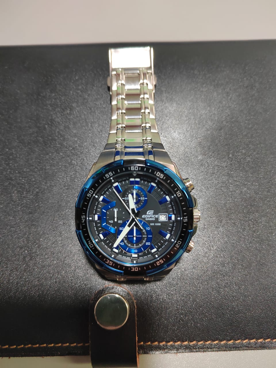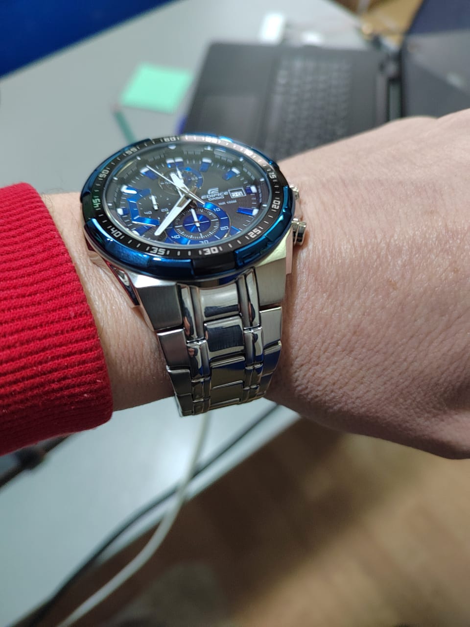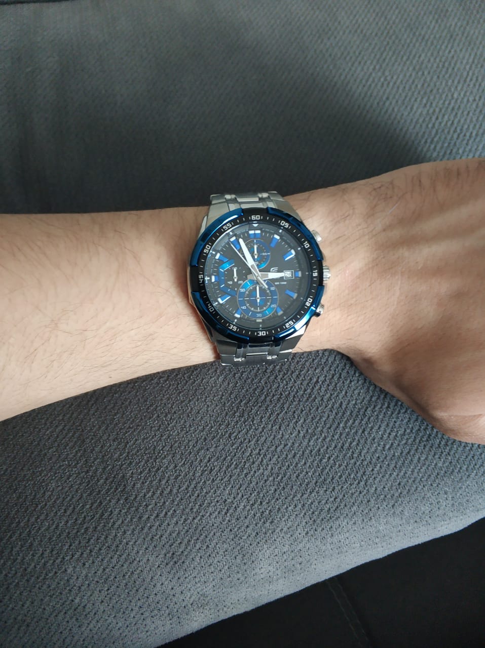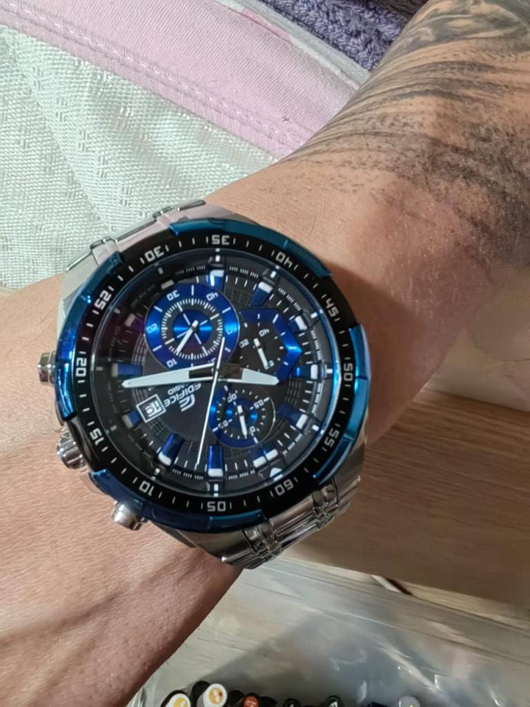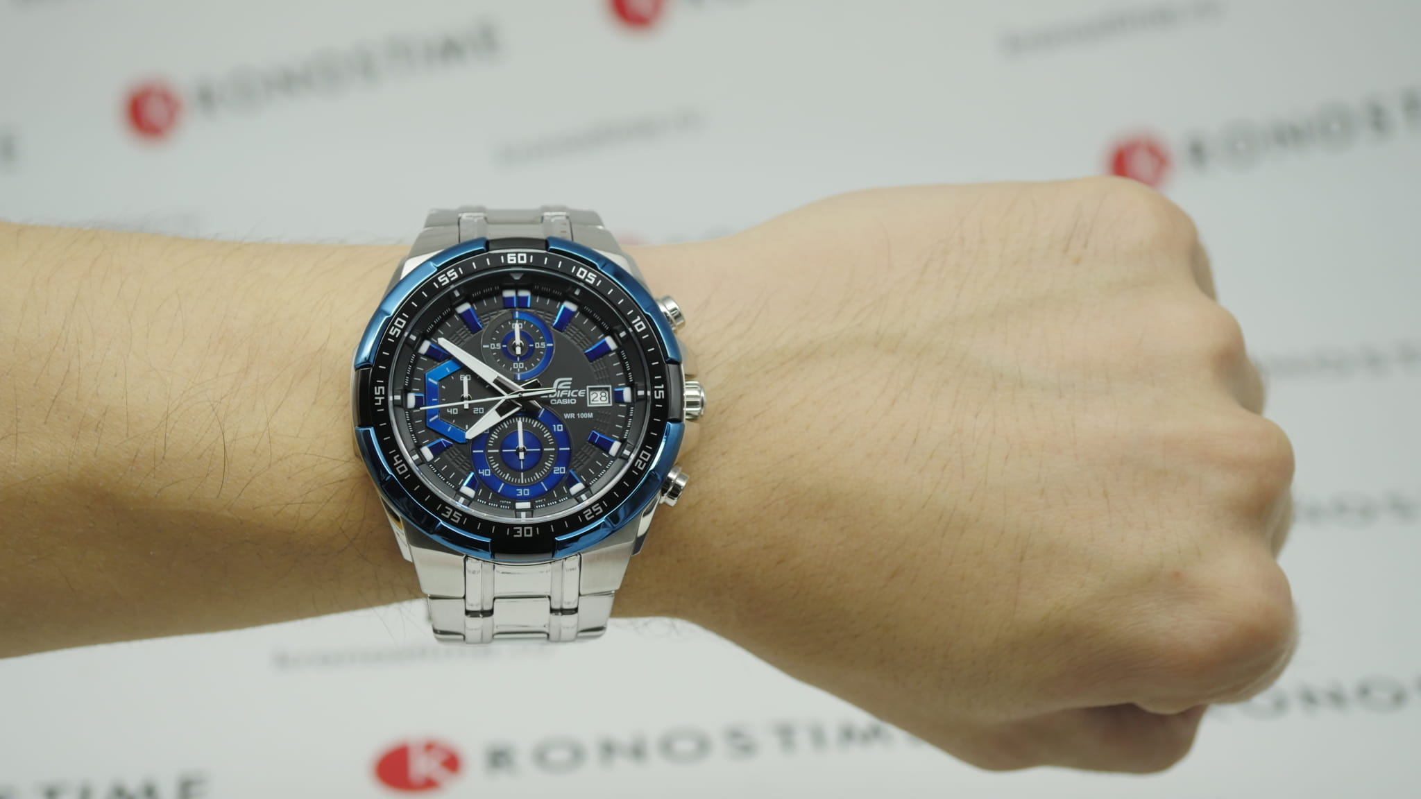 Японские мужские часы из коллекции Edifice идеально смотрятся на широком запястье, стильный спортивный хронографХронографФункция позволяет измерять отрезки времени с особой точностью: часы, минуты, секунды. Верным признаком хронографа является наличие на циферблате 3 дополнительных окошек-счётчиков. позволит всегда находиться в центре внимания.