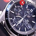 Массивный хронографХронографФункция позволяет измерять отрезки времени с особой точностью: часы, минуты, секунды. Верным признаком хронографа является наличие на циферблате 3 дополнительных окошек-счётчиков. стильно смотрится на запястье, расположение счётчиков на циферблате напоминает нам о приборной панели автомобиля. Модель оснащена технологией . Надёжный корпус из нержавеющей стали 316L дополнен завинчивающейся задней крышкой. Чёрный ремешок из натуральной кожи. Водостойкость 100 метров. Люминесцентная подсветкаЛюминесцентное покрытиеПозволяет считывать показания времени в темноте. Производители наносят на стрелки, часовые индексы, безель или поверхность циферблата светонакопительный состав, дающий холодное свечение.. Секундомер, отображение даты. Габариты: 52 x 46,1 x 11,8 мм.
