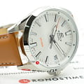 Светлый циферблат дополнен крупными часовыми метками и стрелками контрастного оттенка. Спортивного стиля добавляет секундная стрелка с оранжевым наконечником. Стильно смотрится лаконичный коричневый ремешок из натуральной кожи. Надёжный корпус из нержавеющей стали 316L защищает кварцевый механизм от ударов. Заводная головка с защитой. Люминесцентная подсветкаЛюминесцентное покрытиеПозволяет считывать показания времени в темноте. Производители наносят на стрелки, часовые индексы, безель или поверхность циферблата светонакопительный состав, дающий холодное свечение.. Водостойкость до 10 бар. Минеральное стеклоМинеральное стеклоМинеральное стекло представляет собой искусственно выращенный минерал кварца. Такое стекло отличается особой устойчивостью к повреждениям и царапинам. Уступает по некоторым качествам сапфировому стеклу.. Отображение даты. Габариты: 48 x 42 x 10,9 мм.