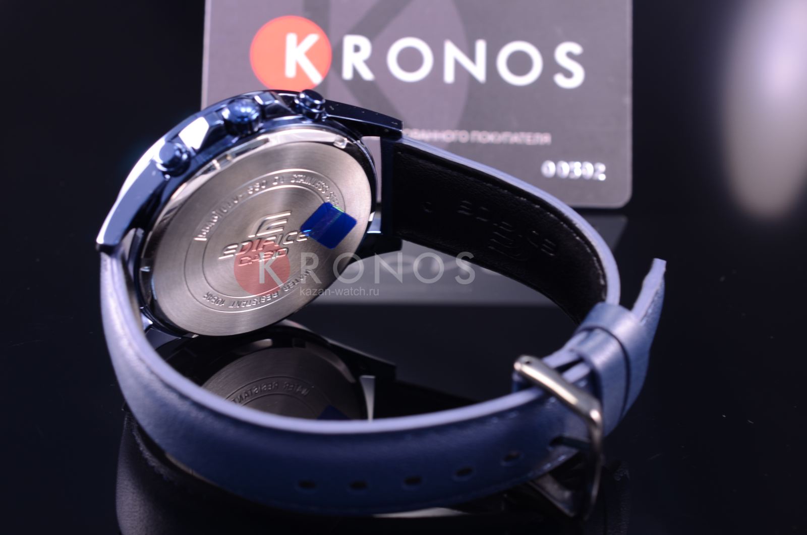 Casio выпускает пополнение у часов-хронографов EFV-530 с секундомером,задней крышкой с винтовым фиксатором,раскладывающейся застежкой, расстегиваемой одним касанием. Полностью голубые часы имеют кожаный ремешок, а фон циферблата выполнен в карбоновой текстуре, которую так любят использовать в тюннинге автомобилей. Часы водонепроницаемы до 100 Бар, имеют секундомер и отображают дату.