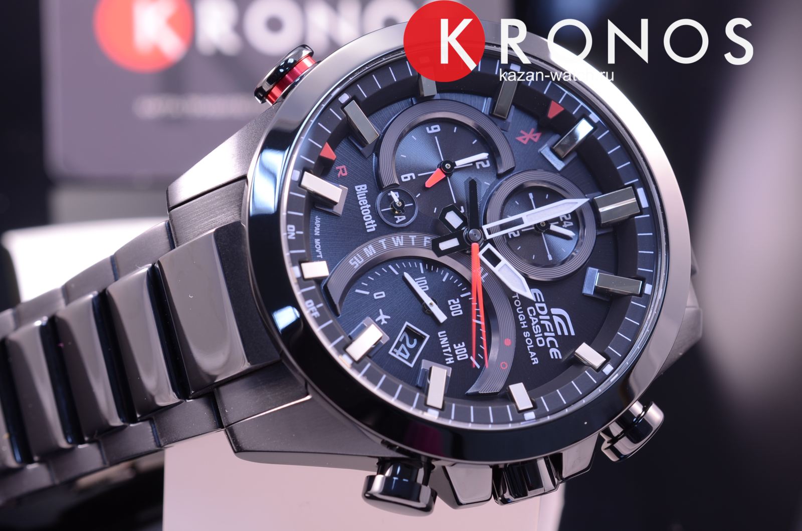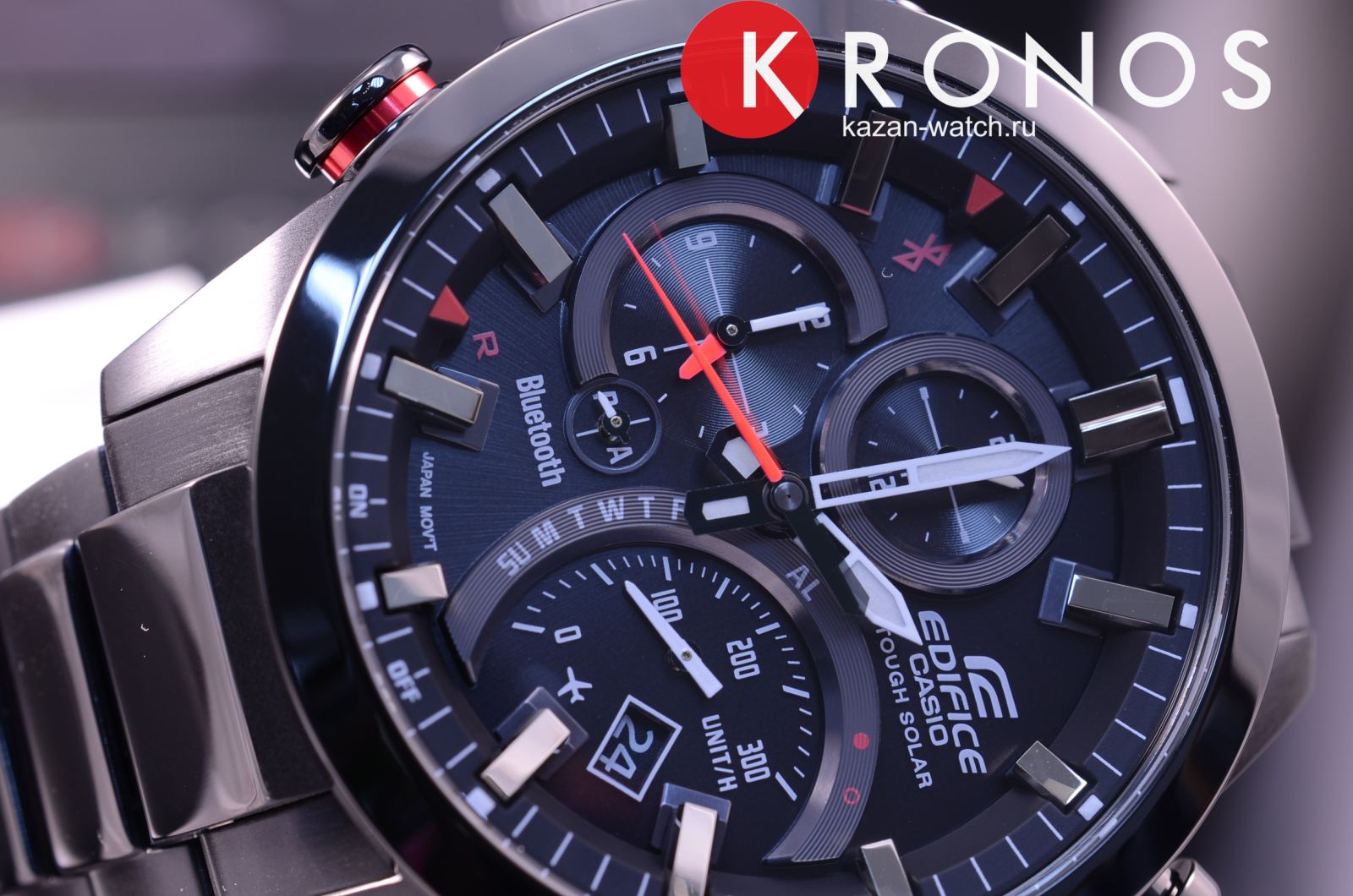 Стильный представитель автомобильной серии станет идеальным аксессуаром для ежедневного ношения. На чёрном фоне ярко выделяются красные элементы, придавая более динамичный характер. Наручные часы показывают действительно точное время благодаря технологии Bluetooth 4.0BluetoothСовременная технология, позволяющая синхронизировать часы с телефоном и переносить данные. Часы с Bluetooth расширяют возможности вашего смартфона и делают его использование ещё более удобным., модель корректирует показатели с помощью синхронизации с интернет-сервером точного времени. Японский кварцевый механизм получает питание за счёт солнечной батареи, реализуется технология . Минеральное стекло. Ударопрочный корпусУдаропрочный корпусМеханизм заключён в корпус, выполненный из современных материалов, устойчивых к ударам, механическим повреждениям и падению с высоты: инновационный пластик, карбон, нержавеющая сталь, титан. и браслет из нержавеющей стали 316L с IP-покрытиемIP-покрытиеМетод ионного напыления. Демонстрирует повышенную устойчивость к истиранию, окислению и химическим веществам. Под воздействием высокого давления и температуры около 1500°C молекулы металла надёжно соединяются с частицами корпуса часов.. Возможность включить авиарежим. Заводная головка с системой защиты. Люминесцентная подсветкаЛюминесцентное покрытиеПозволяет считывать показания времени в темноте. Производители наносят на стрелки, часовые индексы, безель или поверхность циферблата светонакопительный состав, дающий холодное свечение.. Водонепроницаемость 10 бар. Отображение наличия поступивших сообщений электронной почты, будильник, секундомер, функция поиска телефона, хронографХронографФункция позволяет измерять отрезки времени с особой точностью: часы, минуты, секунды. Верным признаком хронографа является наличие на циферблате 3 дополнительных окошек-счётчиков., поиск телефона, отображение числа и дня недели, расчёт средней скорости пройденной дистанции. Габариты: 52 x 48,1 x 14,2 мм.