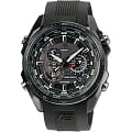 Питание от солнечной энергии. Индикатор зарядки элемента питания. Корпус выполнен из нержавеющей стали с темным ионным покрытием, безель с черным IP-покрытием и контрастной разметкой. Прочный полимерный ремешок с классической застежкой. Минеральное стекло, устойчивое к возникновению царапин. Хронограф с точностью показаний 1/100 сек. Ежедневный будильник.Отображение текущего времени в 29 часовых зонах. Люминесцентное светонакопительное покрытие Водонепроницаемость 100М. В часах можно плавать.