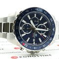 Аксессуар в спортивном стиле прекрасно сочетается с любой одеждой, гармонично смотрится сине-серебристая расцветка. Ярким элементом стали красные секундные стрелки. Часы имеют оттенок дайверского дизайна из-за вращающегося синего безеляБезельВнешний ободок, закрепляющий стекло. В спортивных часах так называется поворотное кольцо с делениями на циферблате, выполняет роль таймера – замеряет отрезки времени на шкале. Неподвижный безель – элемент декора. Однонаправленно вращающийся безель на дайверских часах позволяет фиксировать моменты погружения и выныривания на поверхность. с защитным IP-покрытиемIP-покрытиеМетод ионного напыления. Демонстрирует повышенную устойчивость к истиранию, окислению и химическим веществам. Под воздействием высокого давления и температуры около 1500°C молекулы металла надёжно соединяются с частицами корпуса часов.. Японский высокоточный кварцевый механизм. Батарейка рассчитана на 2 года работы. Люминесцентная подсветкаЛюминесцентное покрытиеПозволяет считывать показания времени в темноте. Производители наносят на стрелки, часовые индексы, безель или поверхность циферблата светонакопительный состав, дающий холодное свечение.. Надёжное минеральное стекло. Ударопрочный корпусУдаропрочный корпусМеханизм заключён в корпус, выполненный из современных материалов, устойчивых к ударам, механическим повреждениям и падению с высоты: инновационный пластик, карбон, нержавеющая сталь, титан. и браслет из нержавеющей стали 316L. Завинчивающаяся задняя крышка. Водостойкость 10 бар. Секундомер, хронографХронографФункция позволяет измерять отрезки времени с особой точностью: часы, минуты, секунды. Верным признаком хронографа является наличие на циферблате 3 дополнительных окошек-счётчиков., индикация числа. Габариты: 51 x 45,9 x 12 мм.