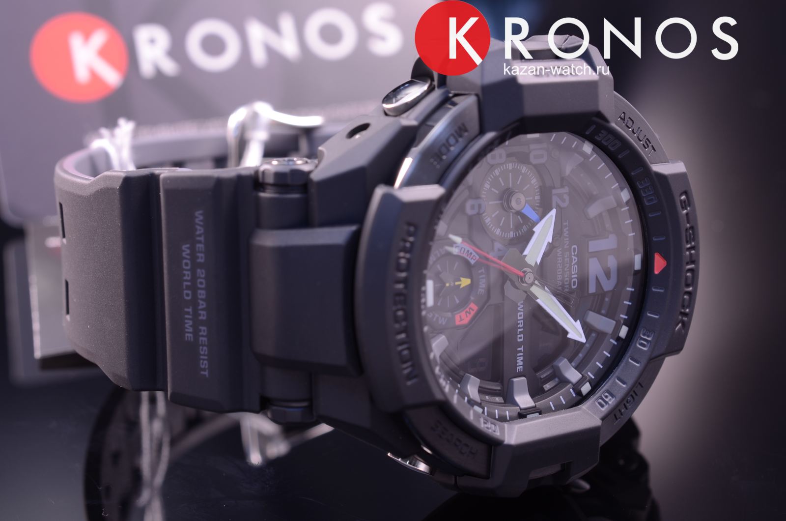 Компания Casio выпустила новинкубренда G-SHOCK, созданную на основе модели GA-1100. Эти часы- новое поколение часов, разработанных специально для пилотов. Главной особенностью GA-1100 является уникальная функция управления мировым временем - часы способны отображать значения времени в двух городах одновременно, с помощью стрелки минут, часов и на встроенном дисплее. Часы просты в управлении и позволяют одним нажатием кнопки узнать время отлета и предполагаемого прибытия в пункт назначения, отследить температуру в кабине самолета и на взлетно-посадочной полосе и определить текущее месторасположение по встроенному компасу. Помимо этого, модель GA-1100 оснащена сверхъяркой подсветкой LED, что позволяет использовать часы вне зависимости от степени освещенности помещения.