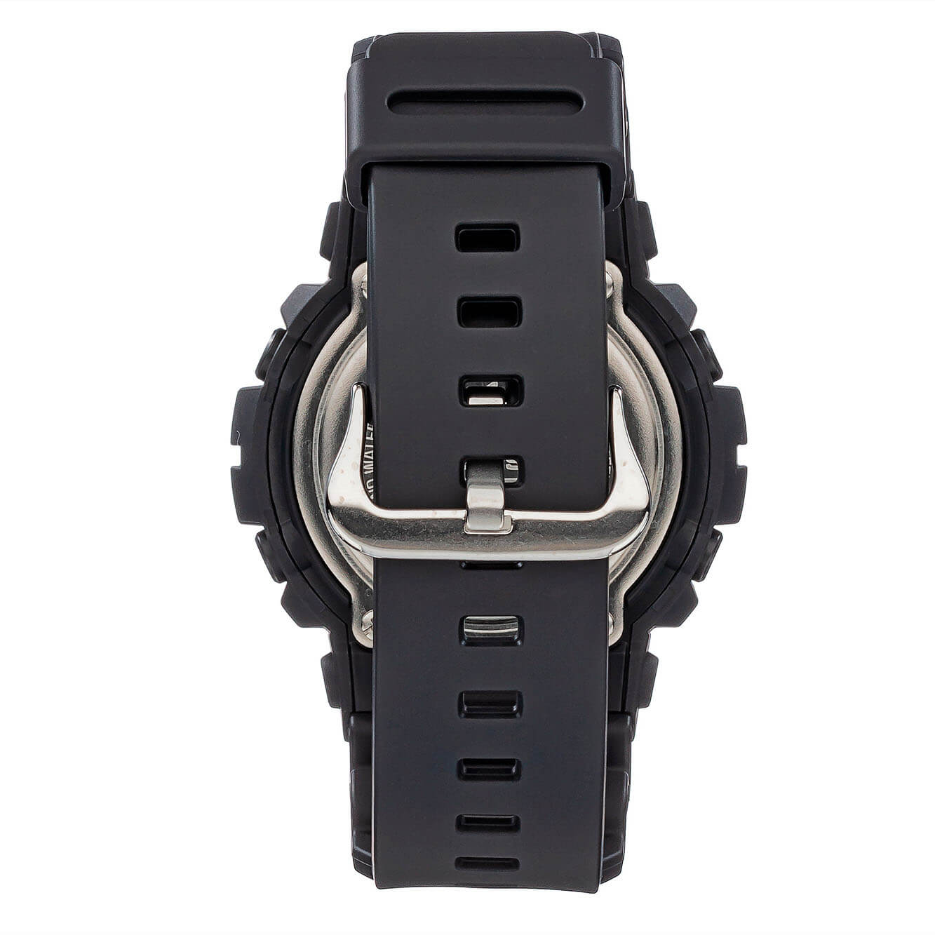Часы в лаконичном исполнении с продуманными динамичными элементами стильно смотрятся благодаря сочетанию чёрного цвета и хромового циферблата. Модель получила уменьшенный ударопрочный корпусУдаропрочный корпусМеханизм заключён в корпус, выполненный из современных материалов, устойчивых к ударам, механическим повреждениям и падению с высоты: инновационный пластик, карбон, нержавеющая сталь, титан. из полимерного материала, если сравнивать с аксессуарами серии GA-700. Кнопка светодиодной подсветкиСветодиодная подсветкаСветодиодная или LED-подсветка обеспечивает появление яркого холодного свечения за счёт LED-элементов - маленьких лампочек. Они потребляют минимальное количество энергии, чаще всего можно встретить 1 светодиод, в нижней части циферблата. вынесена в нижнюю часть, обеспечивая удобное пользование. Японский кварцевый механизм с точностью хода +/- 15 секунд в месяц. Батарейка рассчитана на 3 года службы. Включение и отключение звука кнопок. Ремешок из высококачественного пластика. Закаленное минеральное стекло. Стрелки с люминесцентным покрытиемЛюминесцентное покрытиеПозволяет считывать показания времени в темноте. Производители наносят на стрелки, часовые индексы, безель или поверхность циферблата светонакопительный состав, дающий холодное свечение.. Водонепроницаемость до 200 метров. Автоматический календарь до 2099 года, таймер, хронографХронографФункция позволяет измерять отрезки времени с особой точностью: часы, минуты, секунды. Верным признаком хронографа является наличие на циферблате 3 дополнительных окошек-счётчиков., 5 будильников, секундомер, мировое времяМировое время Полезное часовое усложнение, отображающее время в основных городах и известных областях по всему миру, оно связано с часовыми поясами, удобно для путешественников и бизнесменов. . Габариты: 54,1 x 48,6 x 15,5 мм.