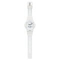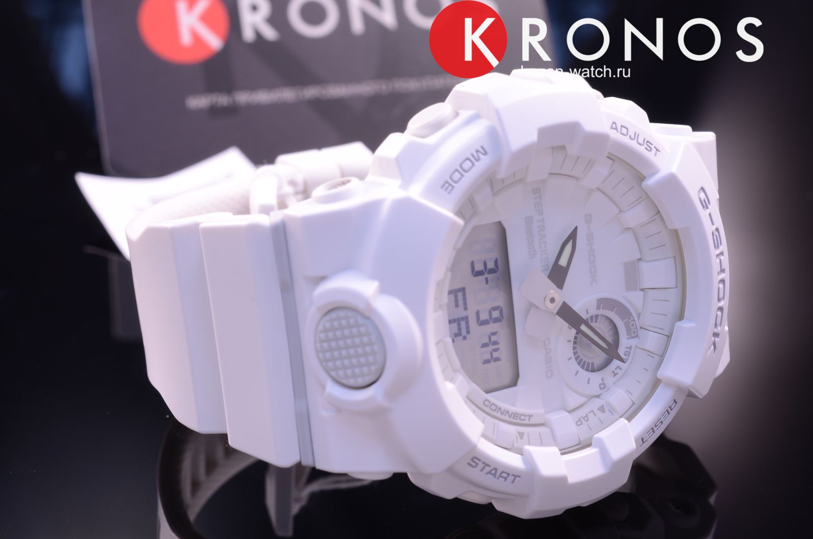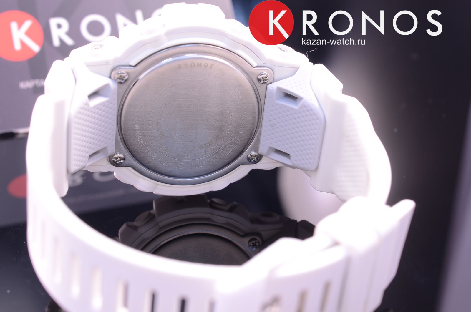 Белоснежные наручные часы с противоударным корпусомУдаропрочный корпусМеханизм заключён в корпус, выполненный из современных материалов, устойчивых к ударам, механическим повреждениям и падению с высоты: инновационный пластик, карбон, нержавеющая сталь, титан. сделаны из полимерного пластика, который устойчив к повреждениям и падению с высоты. Такой же материал был выбран и для гибкого ремешка, обеспечивающего комфортное ношение. Это первая модель из линейки G-Shock, оснащённая шагомером, теперь вы сможете в любое время следить за своей активностью. Японский кварцевый механизм работает от батарейки, срок её службы - 2 года. Минеральное стекло. Светодиодная подсветкаСветодиодная подсветкаСветодиодная или LED-подсветка обеспечивает появление яркого холодного свечения за счёт LED-элементов - маленьких лампочек. Они потребляют минимальное количество энергии, чаще всего можно встретить 1 светодиод, в нижней части циферблата. циферблата, люминесцентное покрытиеЛюминесцентное покрытиеПозволяет считывать показания времени в темноте. Производители наносят на стрелки, часовые индексы, безель или поверхность циферблата светонакопительный состав, дающий холодное свечение. стрелок. Bluetooth-синхронизацияBluetoothСовременная технология, позволяющая синхронизировать часы с телефоном и переносить данные. Часы с Bluetooth расширяют возможности вашего смартфона и делают его использование ещё более удобным., таймер с автоповтором, секундомер, автоматический календарь, будильник. Водостойкость при давлении 20 бар. Габариты: 54,1 x 48,6 x 15,5 мм.