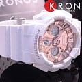 G-Shock S-series -  женская коллекция в уменьшенном корпусе и более женственных цветовых тонах. Точность хода: не хуже +/-15 секунд в месяц. Светодиодная подсветка с функцией автоматической подсветки при наклоне часов. Функция секундомера. Прошедшее время, сплит-тайм и общее время измеряется с точностью 1/100 секунды. Пределы измерений до 1 часа. Таймер обратного отсчета с функцией автоповтора. Максимальное время измерения 60 минут. 5 ежедневных будильников. Автоматический календарь. Функция мирового времени. Особая ударопрочная конструкция защищает от ударов и вибрации. Минеральное стекло устойчивое к возникновению царапин. Ремешок из полимерного материала. Натуральный полимерный материал является идеальным для изготовления ремешка благодаря своей чрезвычайной прочности и гибкости. Корпус выполнен из высококачественного пластика с алюминиевым безелем. Задняя крышка стальная. Водонепроницаемость (20 Бар).