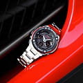 Спортивные ударопрочные наручные кварцевые мужские часы, работающие от солнечной энергии. Высококачественные материалы сочетаются с надежной технологией. Светодиодная подсветка с функцией автоматической подсветки при наклоне часов. Cистема Multi Band 6 позволяет принимать радиосигналы от 6 радиовышек и автоматически корректировать время. Функция секундомера. Таймер обратного отсчета с функцией автоповтора.  5 ежедневных будильников. Автоматический календарь. Функция мирового времени. Особая ударопрочная конструкция защищает от ударов и вибрации. Минеральное стекло устойчивое к возникновению царапин. Браслет из нержавеющей стали.Корпус выполнен из высококачественного пластика с алюминиевым безелем. Задняя крышка стальная.