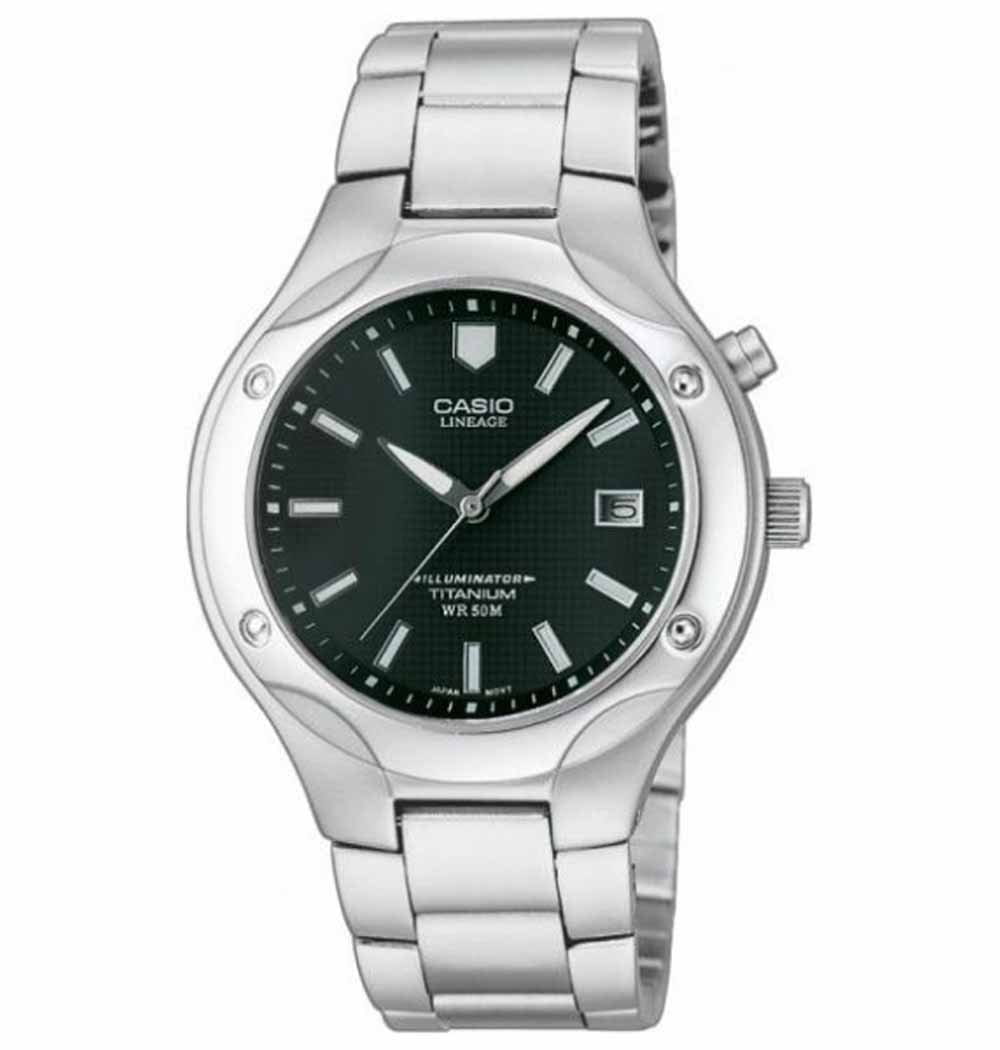 Современные мужские наручные часы в стиле casual. Корпус - Титан; Стекло - Минеральное; Водозащита - 50 м. (WR 50); Материал ремешка - Титан; Цвет ремешка - Титан; Цвет циферблата - Черный.