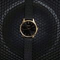 Стильный, благородно смотрящийся дизайн сочетает в себе золотой и черный цвета. На браслет миланского плетения и корпус, сделанные из стали, нанесено защитное IP-покрытиеIP-покрытиеМетод ионного напыления. Демонстрирует повышенную устойчивость к истиранию, окислению и химическим веществам. Под воздействием высокого давления и температуры около 1500°C молекулы металла надёжно соединяются с частицами корпуса часов.. На круглом, черном циферблате расположены аккуратные временные отметки в виде штрихов. Защита часов от негативных воздействий обеспечивается минеральным стеклом. Благодаря кварцевому типу механизма отсутствует необходимость каждый раз заводить часы. Вес аксессуара составляет 60 грамм.