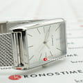 Серебристые, стильные наручные часы выдержаны в стиле винтаж. Браслет миланского плетения будет изящно обрамлять запястье и надежно закрепляется с помощью регулируемого крепления. В прямоугольный корпус из нержавеющей стали вставлено защитное минеральное стекло. На циферблате расположены отчетливые временные отметки в виде штрихов. Тип механизма - кварцевый. Срок службы батарейки составляет 3 года.