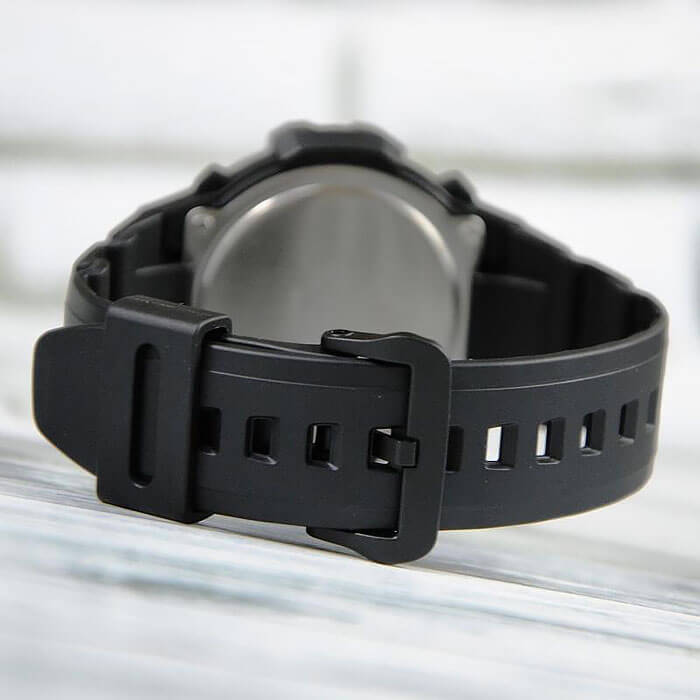 В часах имеется хронограф. Корпус и браслет черного цвета выполнены из высококачественных полимерных материалов. На дисплее отображается текущая дата. Изделие надежно защищено выпуклым акриловым стеклом. Высокая точность информации - прошедшее время отображается с точностью до доли секунды. Информация на дисплее четко видна даже в темное время суток благодаря неоновому покрытию. Высокая водонепроницаемость, которая составляет 10 Бар.