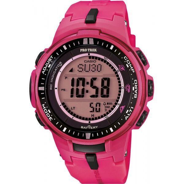 Японские мужские часы Casio Pro Trek PRW-3000-4BDR. Минеральное стеклоМинеральное стеклоМинеральное стекло представляет собой искусственно выращенный минерал кварца. Такое стекло отличается особой устойчивостью к повреждениям и царапинам. Уступает по некоторым качествам сапфировому стеклу. устойчивое к появлению царапин, обладающее высокой прозрачностью. Часы Pro Trek создана для любителей активного отдыха и сочетают в себе самые продвинутые технические характеристики в привлекательном внешнем виде. Корпус часовы выполенен из алюминия и пластика. Циферблат подсвечивается ярким светодиодомСветодиодная подсветкаСветодиодная или LED-подсветка обеспечивает появление яркого холодного свечения за счёт LED-элементов - маленьких лампочек. Они потребляют минимальное количество энергии, чаще всего можно встретить 1 светодиод, в нижней части циферблата., при недостаточном освещении во время поворота запястья в сторону лица подсветка включается автоматически. Питание от солнечной энергии, индикатор заряда батареи. Модуль часов рассчитан на работу при низких температурах. Функция автоматического сохранения энергии. Время работы аккумулятора без подзарядки - 7 месяцев, при включенной функции сохранения энергии - 23 месяца. Мировое времяМировое время Полезное часовое усложнение, отображающее время в основных городах и известных областях по всему миру, оно связано с часовыми поясами, удобно для путешественников и бизнесменов. – 48 городов (29 часовых поясов). Функция включения/отключения летнего времени. 12-ти и 24-х часовой формат времени. Коррекция текущего времени радиосигналом на территории почти всей Европы, США, Японии и Китая. Встроенный цифровой компас. Высотомер - встроенный датчик барометрического давления с возможностью вывода результатов в единицах высоты над уровнем моря (от -700 до 10000 метров). Барометр - измерение атмосферного давления от 260 до 1100 гПа (от 195 до 825 мм рт. ст.). Встроенный датчик температуры от -10° до +60°С с точностью 0,1°C. Время восхода и захода Солнца. СекундомерСекундомерСекундоме́р — прибор, способный измерять интервалы времени с точностью до долей секунды. с точностью измерения 1/100 секунды и измерением до 23 часов 59 минут 59,99 cек. ТаймерТаймерОтсчитывает секунды в обратном направлении в заданном интервале времени. обратного отсчета (диапазон времени 24 часа), автоматический календарь, 12/24 отображение времени. 5 будильниковБудильникБуди́льник — часы, в заданный момент времени подающие звуковой, световой и/или в редких случаях другой сигнал., один с функцией Snooze, ежечасный сигнал. Функция отключения/включения звука. Класс водозащиты: 100 метров, позволит плавать, нырять и заниматься другими водными видами спорта. Ремешок из полимерного материала на стандартной застежке.