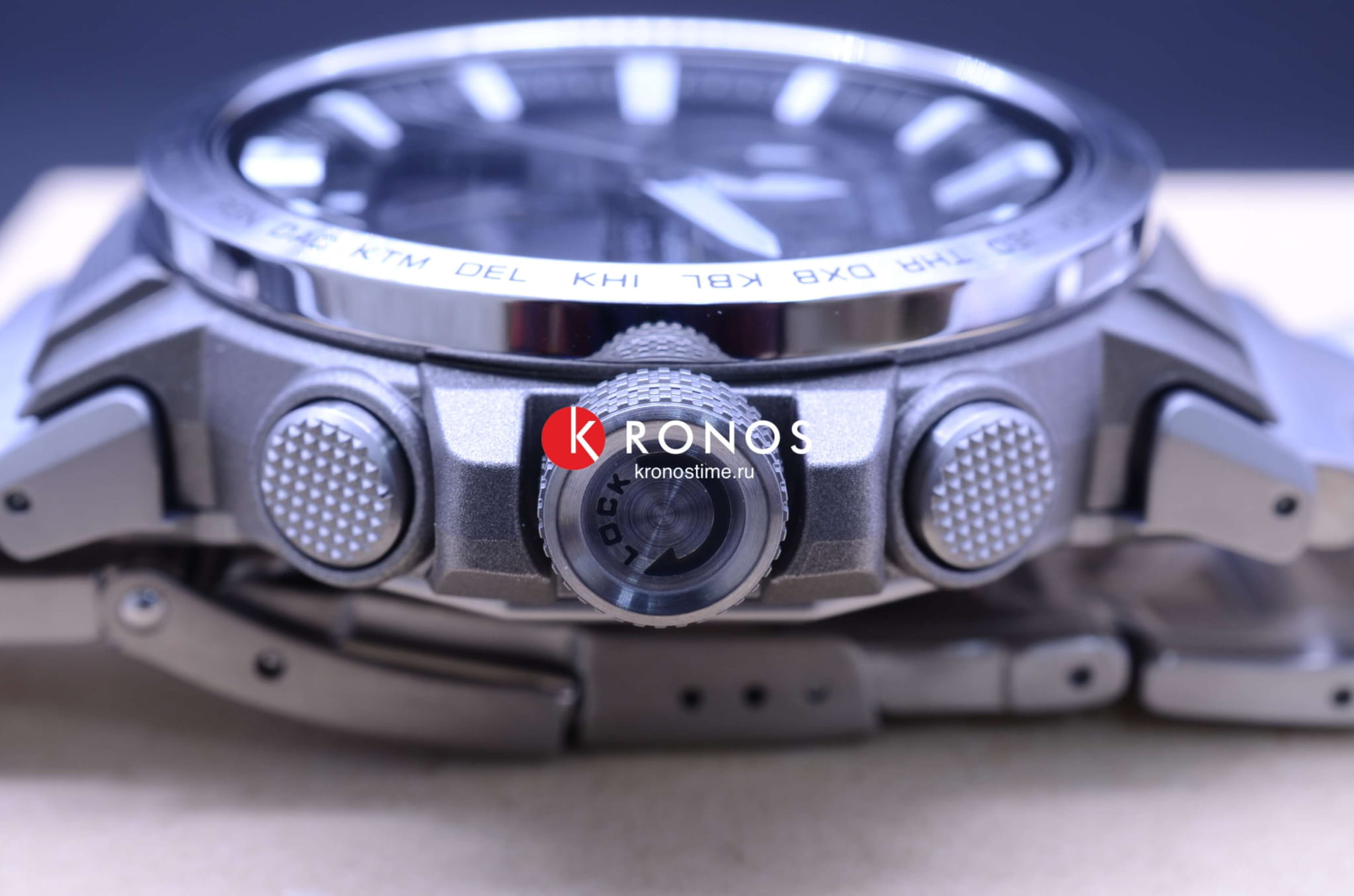 Наручные часы представлены в компактном варианте, если сравнивать их с предыдущими представителями серии PRW-6000. Они отличаются улучшенной конструкцией ударопрочного корпусаУдаропрочный корпусМеханизм заключён в корпус, выполненный из современных материалов, устойчивых к ударам, механическим повреждениям и падению с высоты: инновационный пластик, карбон, нержавеющая сталь, титан., выполненного из полимерного материала. Аксессуар комплектуется браслетом из титанового сплава, характеризующегося лёгкостью и противоаллергенными свойствами. Впечатляющий функционал: приём радиосигнала, секундомер, цифровой компас, мировое времяМировое время Полезное часовое усложнение, отображающее время в основных городах и известных областях по всему миру, оно связано с часовыми поясами, удобно для путешественников и бизнесменов. , барометр, термометр, высотомер. Технология с отображением состояния уровня заряда батарейки. Устойчивость к пониженным температурам. Водонепроницаемость до 10 бар. Габариты: 50,5 x 47,2 x 13,3 мм.