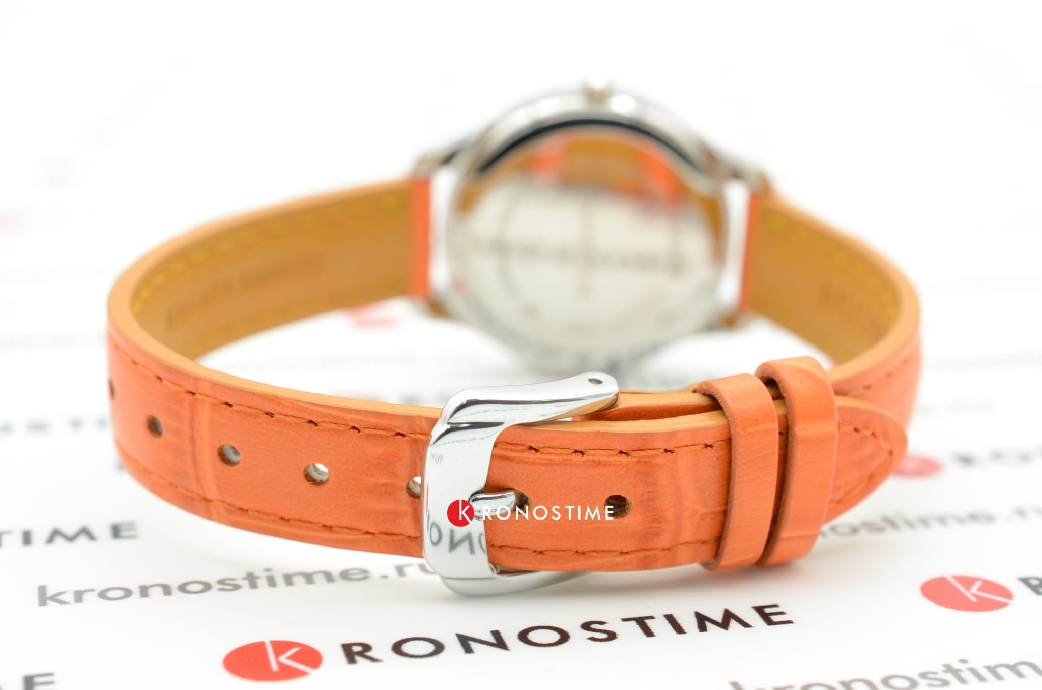Наручные часы имеют элегантный дизайн, что делает их актуальным вариантом на долгие годы. Римские цифры наделяют модель оттенком винтажа, в качестве декора используются кристаллы Swarovski. Японский кварцевый механизм отличается высокой точностью хода. Яркая деталь – оранжевый ремешок из натуральной кожи. Возможности: отображение даты, люминесцентная подсветкаЛюминесцентное покрытиеПозволяет считывать показания времени в темноте. Производители наносят на стрелки, часовые индексы, безель или поверхность циферблата светонакопительный состав, дающий холодное свечение..