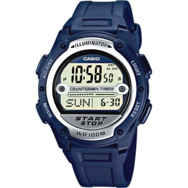 Кварцевые мужские часы. Оснащены: секундомером, отображением времени в двух часовых поясах, таймером, календарем, будильником, подсветкой. Корпус - Пластиковый; Стекло - Пластик; Водозащита - 100 м. (WR 100); Материал ремешка - Пластиковый; Цвет ремешка - Синий; Цвет циферблата - Lcd.