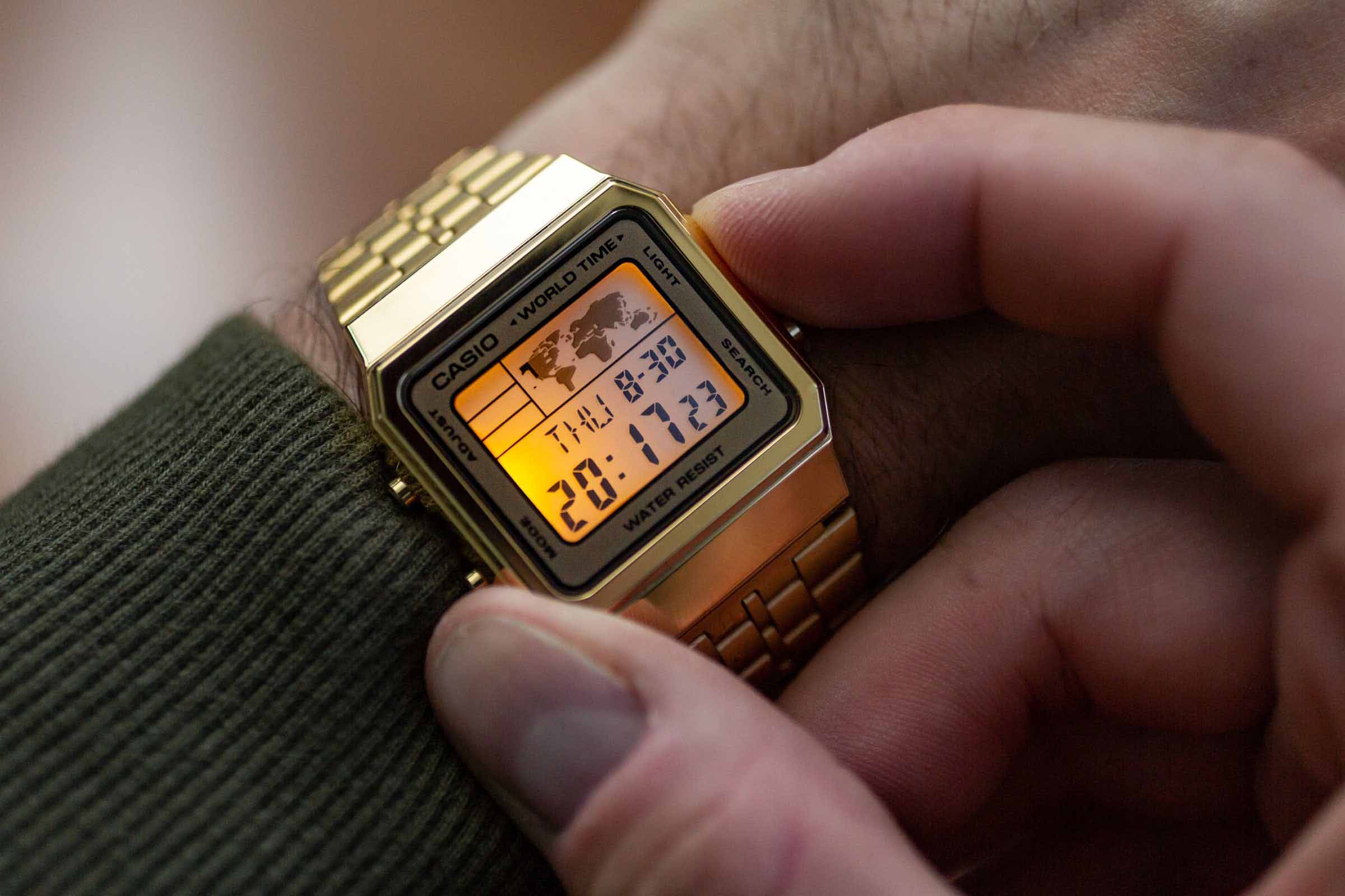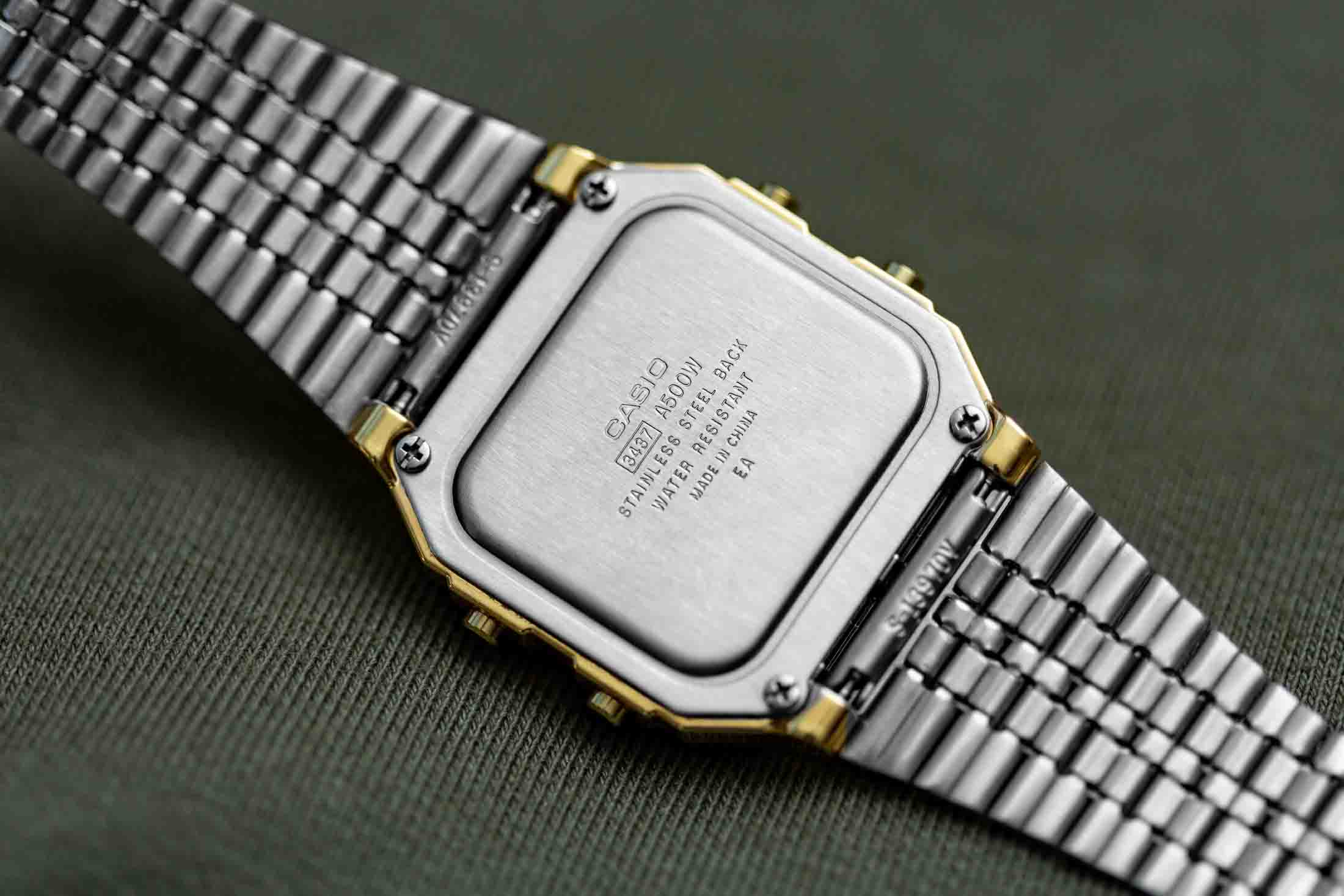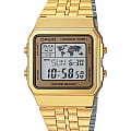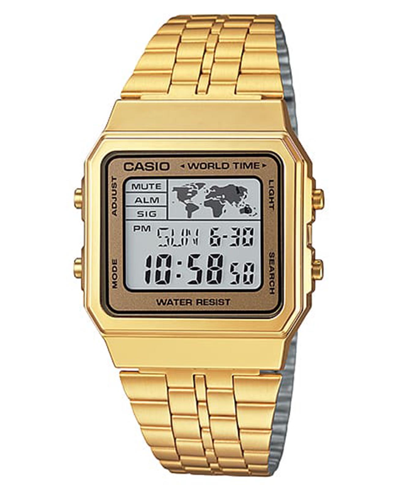 Японские мужские часы с хронографом Casio Vintage A500WGA-9D (A500WGA-9), кварцевый механизм с высокой точностью. Класс водозащиты: 30 метров, позволит защитить корпус от случайных брызг или капель дождя. Корпус часов изготовлен из пластика, золотистого цвета.