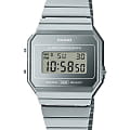 Спортивные японские мужские часы с секундомеромСекундомерСекундоме́р — прибор, способный измерять интервалы времени с точностью до долей секунды. Casio Vintage A700WEV-7A, кварцевый механизм с высокой точностью. Издавая звуковой сигнал в установленное время, будильникБудильникБуди́льник — часы, в заданный момент времени подающие звуковой, световой и/или в редких случаях другой сигнал. напоминает о событиях, которые повторяются каждый день. Корпус из полимерного пластика. Класс водозащиты: 30 метров, позволит защитить корпус от случайных брызг или капель дождя. Браслет из нержавеющей стали на раскладной застёжкеРаскладная застёжкаТакой тип застёжки используется только на браслетах из металла. Она никогда не раскрывается полностью, происходит разделение на 2 и более частей. Раскладывающая застёжка снизит вероятность потери часов к минимуму..