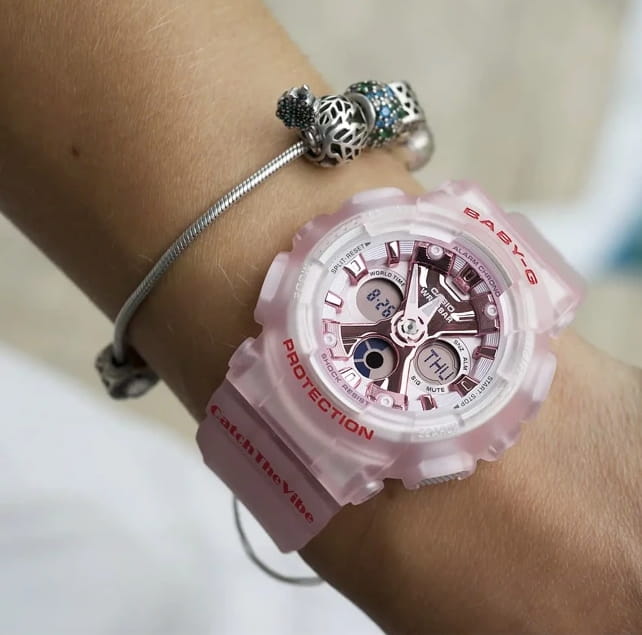 Японские женские часы с функцией мирового времени Casio Baby-G BA-130CV-4A, из коллекции Baby-G. Функции: автоматическая светодиодная подсветка, ударопрочный корпусУдаропрочный корпусМеханизм заключён в корпус, выполненный из современных материалов, устойчивых к ударам, механическим повреждениям и падению с высоты: инновационный пластик, карбон, нержавеющая сталь, титан., функция мирового времениМировое время Полезное часовое усложнение, отображающее время в основных городах и известных областях по всему миру, оно связано с часовыми поясами, удобно для путешественников и бизнесменов. , секундомерСекундомерСекундоме́р — прибор, способный измерять интервалы времени с точностью до долей секунды., таймерТаймерОтсчитывает секунды в обратном направлении в заданном интервале времени., 5 будильниковБудильникБуди́льник — часы, в заданный момент времени подающие звуковой, световой и/или в редких случаях другой сигнал., автоматический календарь, ежечасный сигнал, 12/24- часовое отображение времени, вкл/выкл звука кнопок. Минеральное стекло, корпус из полимерного пластика, ремешок из полимерного материала, стандартная застежка, водонепроницаемость (10 бар). Габариты (Ш x В x Г) 46,3 х 43,4 х 15,8. Вес 45 г.