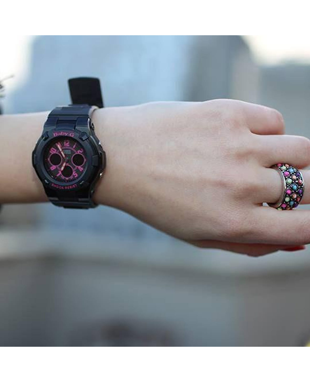 Японские женские часы-хронографХронографФункция позволяет измерять отрезки времени с особой точностью: часы, минуты, секунды. Верным признаком хронографа является наличие на циферблате 3 дополнительных окошек-счётчиков. Casio Baby-G BGA-117-1B1 из коллекции Baby-G. Серия, которая выражает спортивность и цвет, которые являются основой бренда Baby-G. Минеральное стеклоМинеральное стеклоМинеральное стекло представляет собой искусственно выращенный минерал кварца. Такое стекло отличается особой устойчивостью к повреждениям и царапинам. Уступает по некоторым качествам сапфировому стеклу. устойчивое к появлению царапин, обладающее высокой прозрачностью. Корпус часов изготовлен из стали с пластиком. Функции: автоматическая светодиодная подсветка.Необритовое покрытиеПодсветка NeobriteИспользование светонакопительных составов на основе сульфида цинка или алюмината стронция, яркий свет можно наблюдать на протяжении 6-10 часов после «зарядки» часов около источника света. продолжает светиться в темноте даже после непродолжительного пребывания на свету.Ударопрочный корпусУдаропрочный корпусМеханизм заключён в корпус, выполненный из современных материалов, устойчивых к ударам, механическим повреждениям и падению с высоты: инновационный пластик, карбон, нержавеющая сталь, титан. защищает механизм от ударов и вибрации. Функция Мирового времениМировое время Полезное часовое усложнение, отображающее время в основных городах и известных областях по всему миру, оно связано с часовыми поясами, удобно для путешественников и бизнесменов. . СекундомерСекундомерСекундоме́р — прибор, способный измерять интервалы времени с точностью до долей секунды. с точностью измерения 1/100 секунды и измерением до 23 часов 59 минут 59,99 cек. ТаймерТаймерОтсчитывает секунды в обратном направлении в заданном интервале времени. обратного отсчета (диапазон времени 24 часа), автоматический календарь, 12/24 отображение времени. 5 ежедневных будильниковБудильникБуди́льник — часы, в заданный момент времени подающие звуковой, световой и/или в редких случаях другой сигнал..Память на 60 этапов, включая дату и время прохождения этапа. Класс водозащиты: 100 метров, позволит плавать без погружения. Ремешок из полимерного материала на стандартной застежке.