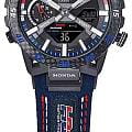 Модель Casio Edifice ECB-2000HR-1A из коллекции Edifice сочетает передовые технологии и динамичный спортивный стиль. Корпус выполнен из углеродного волокнаCarbon Core Guard Новейшая структура корпуса, разработанная Casio. Полиуретановая пластина дополнительно усилена карбоновыми вставками, что придаёт специальную защиту от механических повреждений. Карбон отличается лёгкостью и прочностью., усиленного смолой, что обеспечивает прочность и легкость и стальной безельБезельВнешний ободок, закрепляющий стекло. В спортивных часах так называется поворотное кольцо с делениями на циферблате, выполняет роль таймера – замеряет отрезки времени на шкале. Неподвижный безель – элемент декора. Однонаправленно вращающийся безель на дайверских часах позволяет фиксировать моменты погружения и выныривания на поверхность. с PVD-покрытиемPVDУльтратонкое покрытие наносится в технике вакуумного напыления, сочетает в себе нитрид титана особой прочности со слоем золота или оксида хрома. Несёт в себе декоративную или защитную функцию.. Циферблат с металлическими метками и объемными элементами подчеркивает автоспортивный характер модели. Часы оснащены Bluetooth®-синхронизациейBluetoothСовременная технология, позволяющая синхронизировать часы с телефоном и переносить данные. Часы с Bluetooth расширяют возможности вашего смартфона и делают его использование ещё более удобным., позволяющей автоматически корректировать время, управлять мировым временемМировое время Полезное часовое усложнение, отображающее время в основных городах и известных областях по всему миру, оно связано с часовыми поясами, удобно для путешественников и бизнесменов. и передавать данные секундомера через приложение CASIO WATCHES. Солнечная батарея Tough SolarTough SolarТехнология основана на подзарядке аккумулятора от источника солнечного света, специальная панель улавливает солнечные лучи и преобразует их в энергию для работы часов. Достаточно пары минут нахождения на солнце для функционирования часов в течении суток. преобразует свет в энергию, обеспечивая бесперебойную работу. Дополнительные функции включают таймер обратного отсчетаТаймерОтсчитывает секунды в обратном направлении в заданном интервале времени. с индикатором на отметке 9 часов, будильникБудильникБуди́льник — часы, в заданный момент времени подающие звуковой, световой и/или в редких случаях другой сигнал., секундомерСекундомерСекундоме́р — прибор, способный измерять интервалы времени с точностью до долей секунды. и двойную светодиодную подсветку Super IlluminatorСветодиодная подсветкаСветодиодная или LED-подсветка обеспечивает появление яркого холодного свечения за счёт LED-элементов - маленьких лампочек. Они потребляют минимальное количество энергии, чаще всего можно встретить 1 светодиод, в нижней части циферблата. для удобного чтения показаний в темноте. Кожаный ремешок на стандартной застёжке. Водонепроницаемость до 100 метров делает модель подходящей для плавания и активного образа жизни. Edifice Sospensione x HRC Honda Racing. Модель отдает дань уважения захватывающим победам команды Honda Racing Corporation (HRC). Дизайн вдохновлен подвеской болида Формулы-1. Ушки часов разработаны по схеме четырехрычажной подвески гоночного автомобиля. Красные, синие и белые элементы, присутствующие в дизайне часов символизируют гордый гоночный дух. Значение каждого цвета 