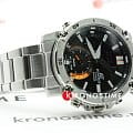 Часы выполнены из нержавеющей стали 316L, оранжевые элементы стильно смотрятся на циферблате. Японский кварцевый механизм с точностью хода +/- 15 секунд в месяц работает от батарейки, рассчитанной на 2 года службы. Модель оснащена двойной светодиоднойСветодиодная подсветкаСветодиодная или LED-подсветка обеспечивает появление яркого холодного свечения за счёт LED-элементов - маленьких лампочек. Они потребляют минимальное количество энергии, чаще всего можно встретить 1 светодиод, в нижней части циферблата. и люминесцентной подсветкойЛюминесцентное покрытиеПозволяет считывать показания времени в темноте. Производители наносят на стрелки, часовые индексы, безель или поверхность циферблата светонакопительный состав, дающий холодное свечение.. Минеральное стекло устойчиво к царапинам. Усложнения: мировое времяМировое время Полезное часовое усложнение, отображающее время в основных городах и известных областях по всему миру, оно связано с часовыми поясами, удобно для путешественников и бизнесменов. , секундомер, BluetoothBluetoothСовременная технология, позволяющая синхронизировать часы с телефоном и переносить данные. Часы с Bluetooth расширяют возможности вашего смартфона и делают его использование ещё более удобным., перемещение стрелок, хронографХронографФункция позволяет измерять отрезки времени с особой точностью: часы, минуты, секунды. Верным признаком хронографа является наличие на циферблате 3 дополнительных окошек-счётчиков., календарь. Часы переключаются в авиарежим.