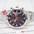 Глубокий синий циферблат дополнен тремя счетчиками хронографаХронографФункция позволяет измерять отрезки времени с особой точностью: часы, минуты, секунды. Верным признаком хронографа является наличие на циферблате 3 дополнительных окошек-счётчиков., создавая гармоничный баланс между классическим стилем и динамичным дизайном. Часовые метки и стрелки покрыты люминесцентным составомЛюминесцентное покрытиеПозволяет считывать показания времени в темноте. Производители наносят на стрелки, часовые индексы, безель или поверхность циферблата светонакопительный состав, дающий холодное свечение., улучшающим читаемость в условиях недостаточного освещения. Сапфировое стеклоСапфировое стеклоПрочный и надёжный материал из кристалла сапфира синтетического происхождения, характеризующийся особой твёрдостью и устойчивостью к царапинам и повреждениям. с антибликовым покрытием защищает дисплей от царапин и механических повреждений.