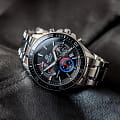 Часы Edifice разработаны с учетом экстремальных условий эксплуатации, поэтому крайне эргономичны и функциональны. Светонакопительное покрытие продолжает светится в темноте даже после непродолжительного пребывания на свету. Часы-хронографХронографФункция позволяет измерять отрезки времени с особой точностью: часы, минуты, секунды. Верным признаком хронографа является наличие на циферблате 3 дополнительных окошек-счётчиков. с секундомеромСекундомерСекундоме́р — прибор, способный измерять интервалы времени с точностью до долей секунды. с точностью показаний 1 секунда и временем измерения 10 минут. Ретроградный указатель минутной стрелки хронографа. 12-ти и 24-х часовой формат времени. Метки в виде штрихов. Окошко даты находится между метками 4 и 5 часов. Заводная головка с защитой. Задняя крышка с винтовым фиксатором. Батарея рассчитана на 3 года. Тройная раскладывающаяся застежка, расстегиваемая одним касанием.