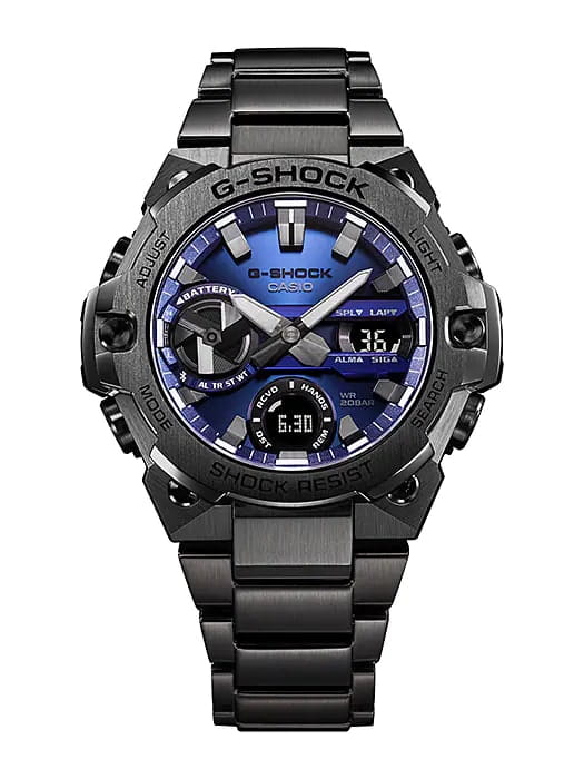 Японские женские часы Casio G-Shock GST-B400BD-1A2, электронный механизм с высокой точностью. Класс водозащиты: 200 метров, позволит плавать, нырять и заниматься другими водными видами спорта. Корпус часов изготовлен из стали, цвета.
